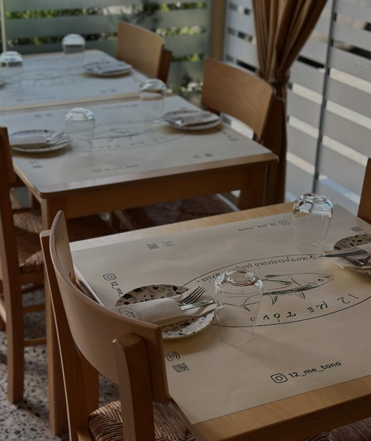 Το 12 με τόνο είναι οι άνθρωποί του, δηλαδή η οικογένειά του. Έχεις την αίσθηση ότι είσαι φιλοξενούμενος σε ένα χωριό κάπου στη Μυτιλήνη και δοκιμάζεις πιάτα υψηλής μαγειρικής επινόησης με πρώτες ύλες που συλλέγησαν πριν από λίγο από τ ην κοντινότερη παραλία.