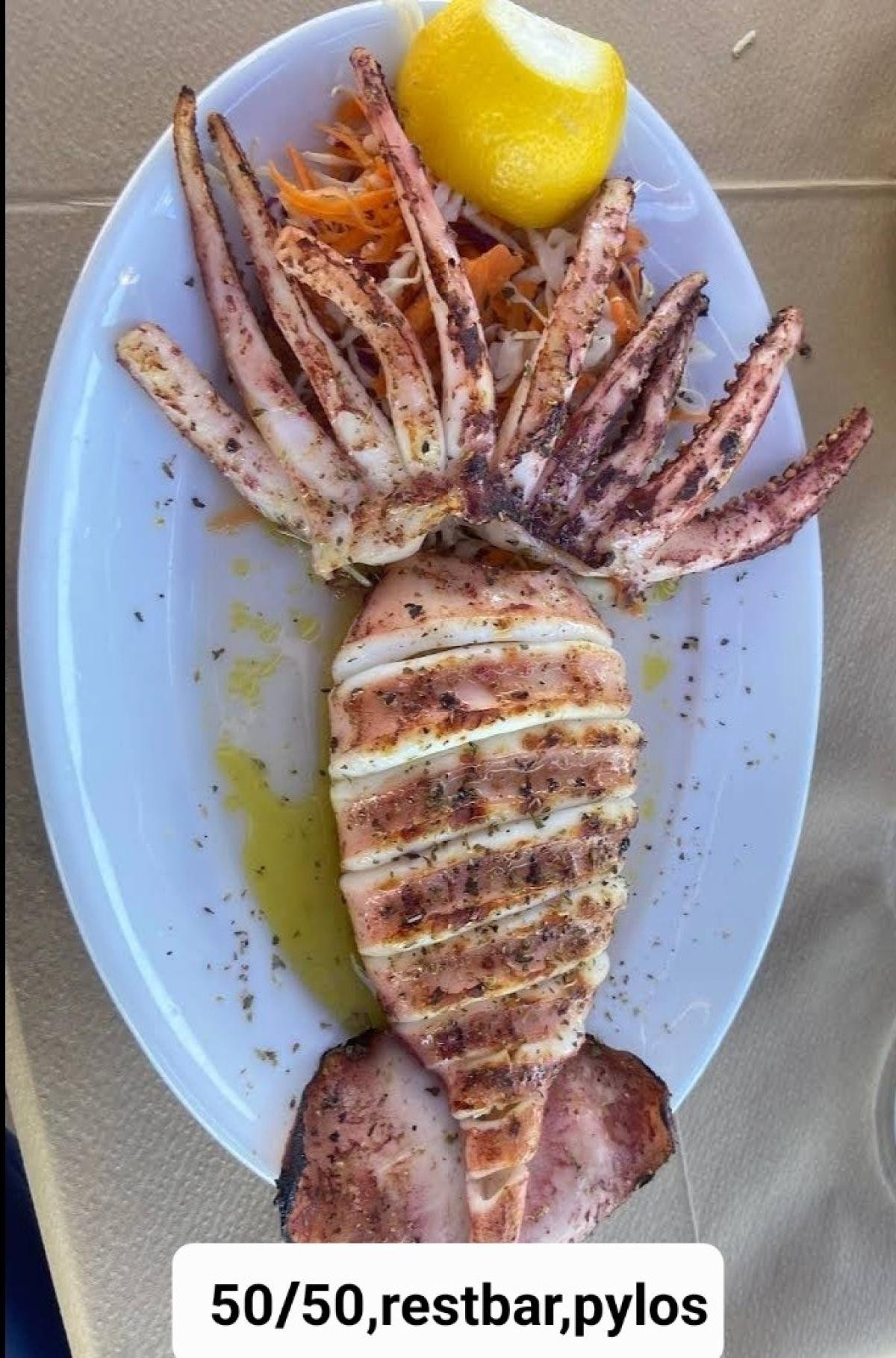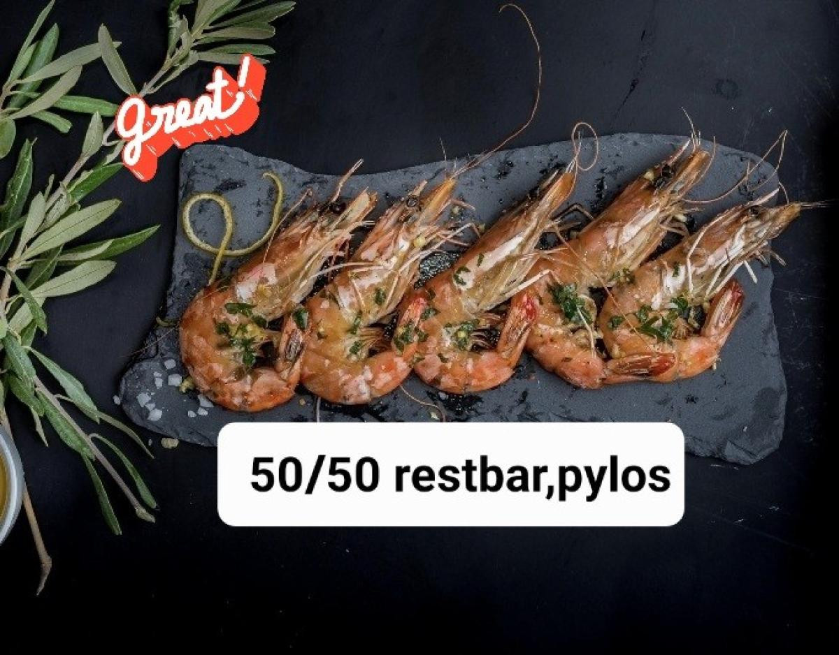 Sea, sun and delicious seafood make up the new setting at the 50/50 spot opposite the beach of Pylos.You can enjoy your meal by the sea with your friends. Try delicious dishes made with fresh and pure ingredients to taste during your visit to 50/50 restaurant. From the restaurant's menu you can taste delicious dishes of fresh fish, seafood, seafood pasta and many choices of grill dishes and stews of Greek and Mediterranean cuisine. You can accompany your meal with a glass of wine or any of your favorite cocktails from the 50/50 restaurant in Pylos. Enjoy a unique meal at 50/50 restaurant in Pylos by the sea while gazing at the beautiful sunset.