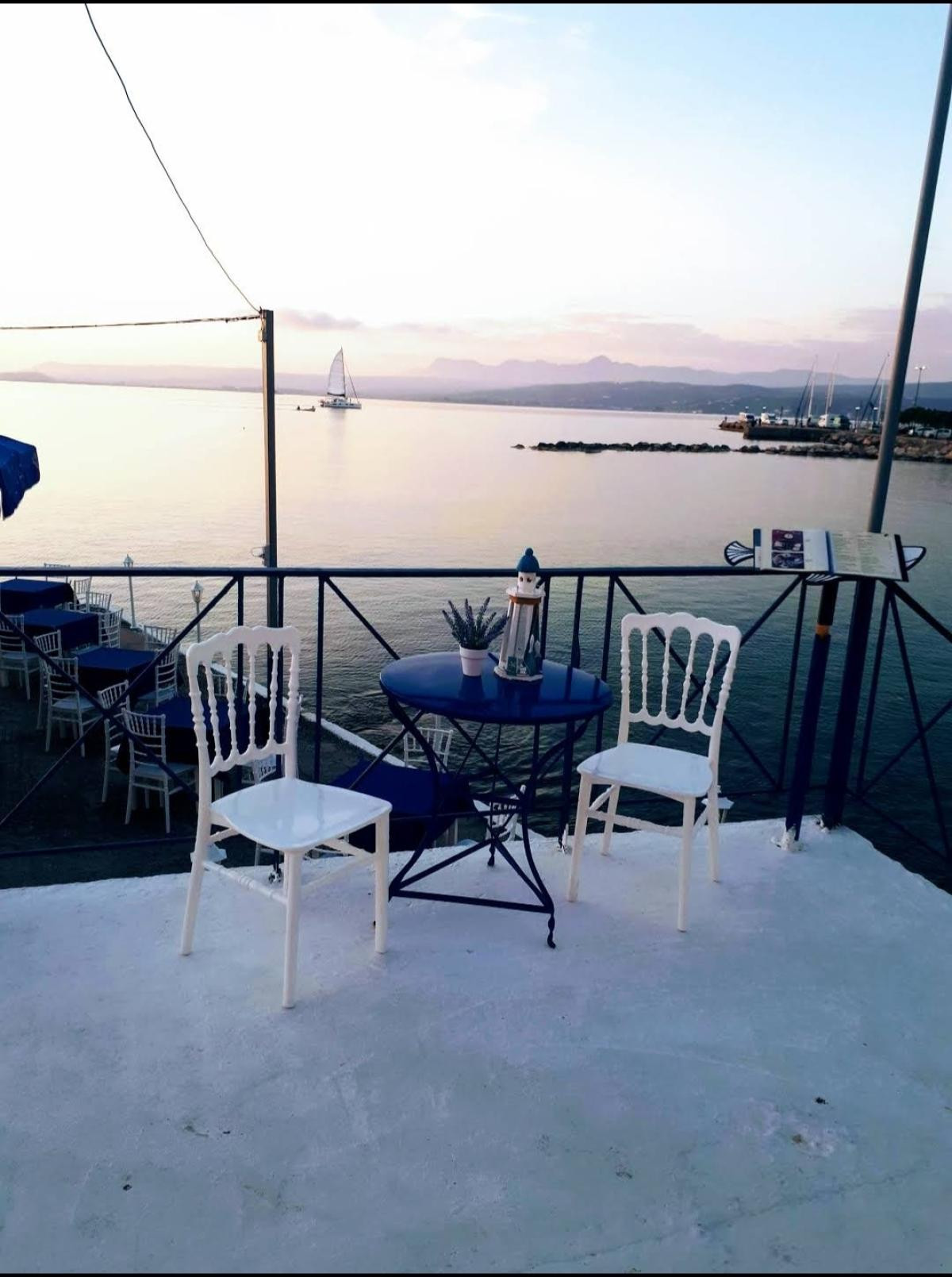We knew this restaurant from lunches when in Pylos, however this was our first evening visit. Sitting right by the water's edge with the sun setting over Pylos bay, it couldn't be more perfect. The staff were friendly and the food was wonderful. Our friends had the seafood risottos, I had the prawn spaghetti and my husband had the seafood orzo and were so very pleased with everything, including the perfect portions.