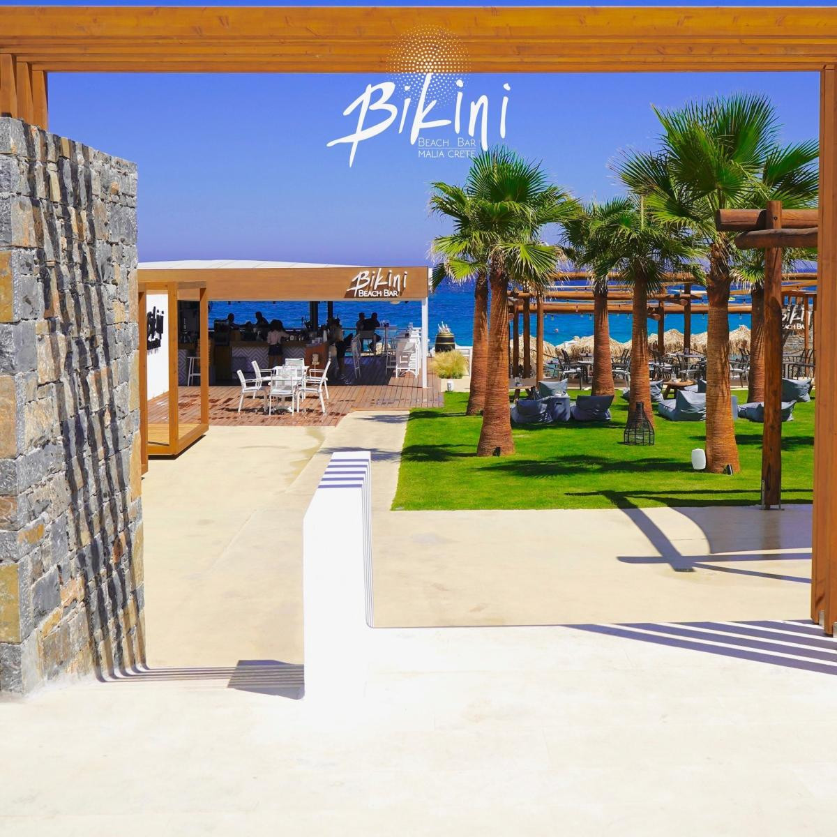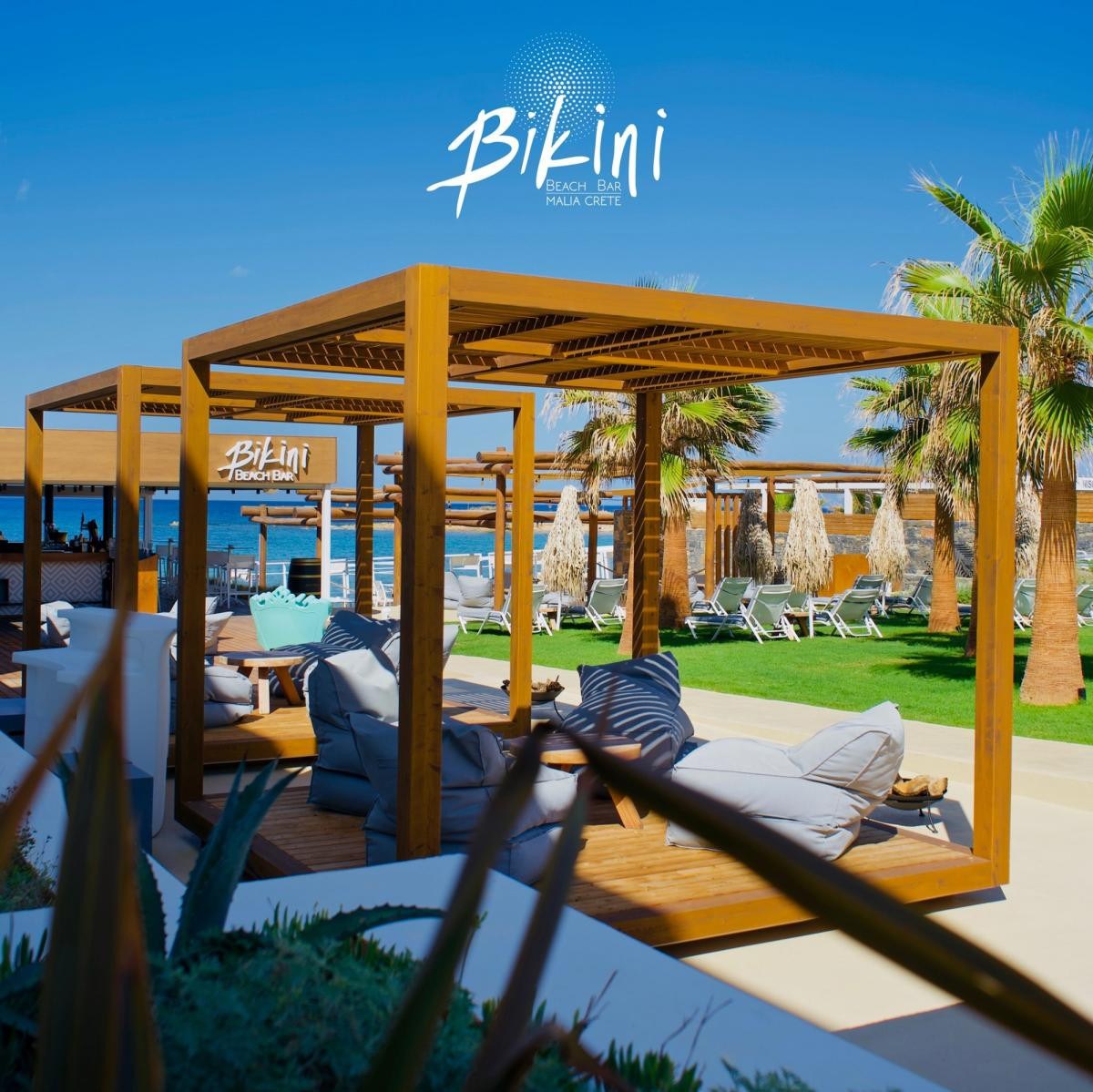 An amazingly designed and decorated, the name of the Bikini Beach Bar, in Malia, Crete. Bikini Beach Bar is the ideal place to enjoy your meal by the sea with your favourite drink, wine or cocktail.