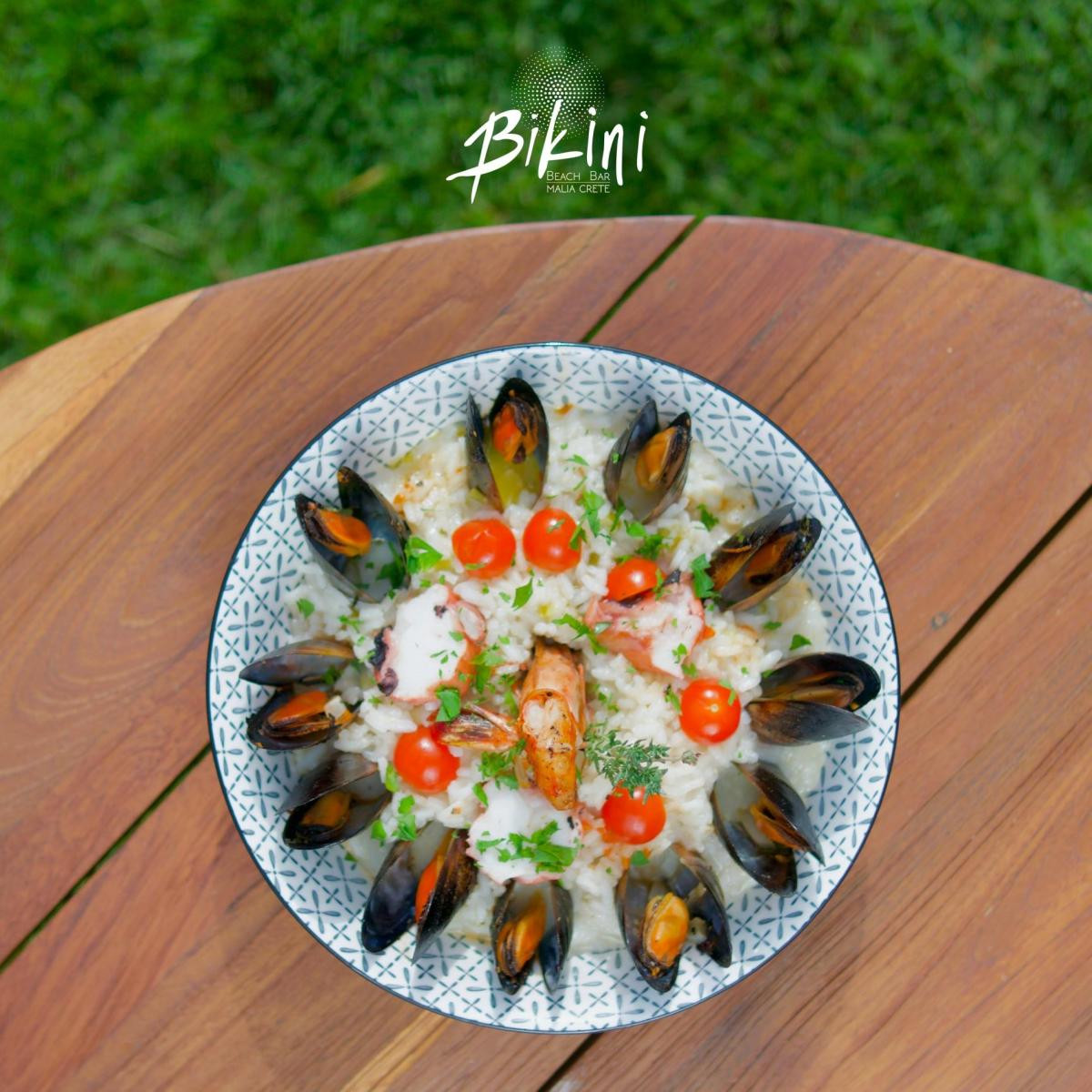 It offers great food with a romantic atmosphere, always with the best service from the very polite and cheerful staff of Bikini Beach Bar, in Malia, Crete.