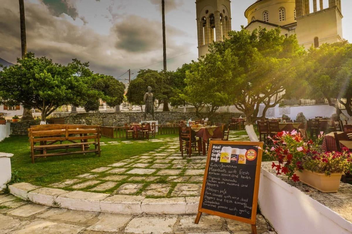 foothills of mountains perfect setting inside and out. cretan history. delicious food passionate attentive owner! good price wonderful going back