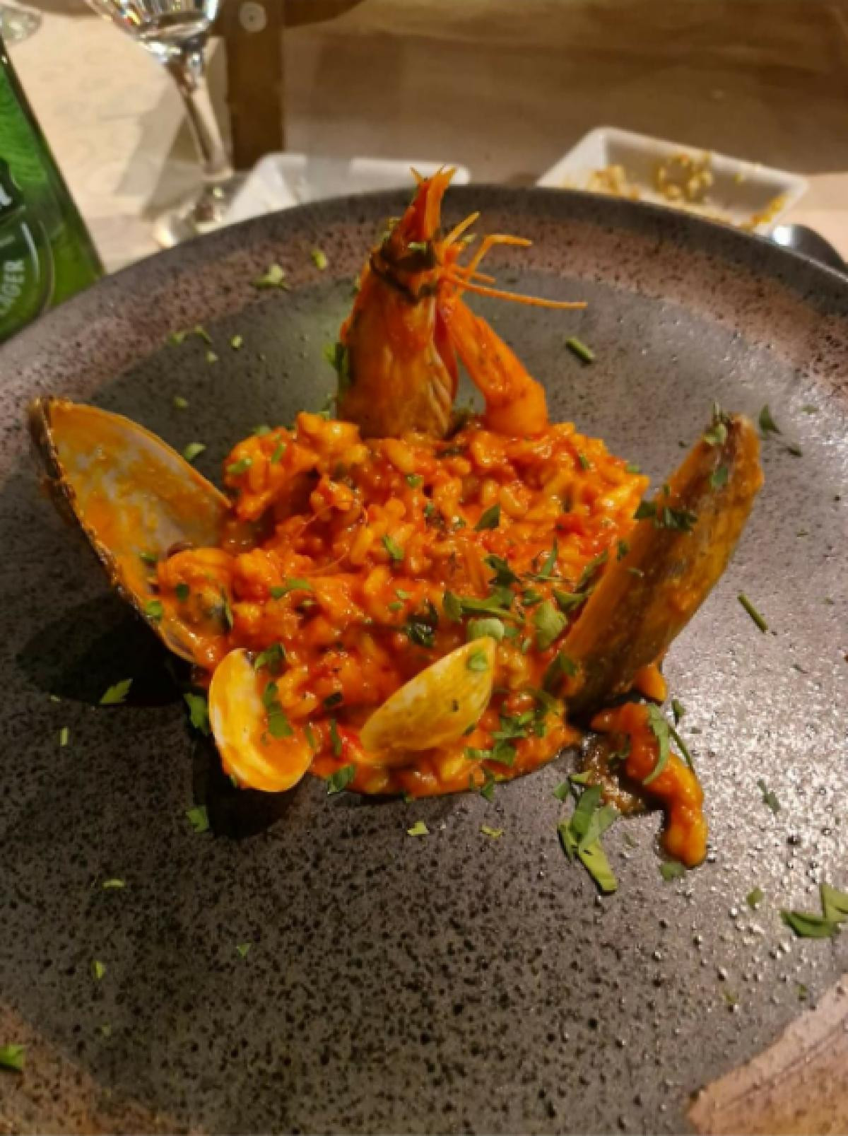 İlk olarak garsonlar çok ilgili ve güler yüzlüydü. Mekanın iç tasarımı çok şık ve dikkat çekiciydi. Yemeklerin tadı çok güzeldi ve porsiyonları çok büyüktü. İkram olarak dondurma verdiler ve o da lezzetliydi. Çok romantik ve keyifli bir akşam geçirdik.