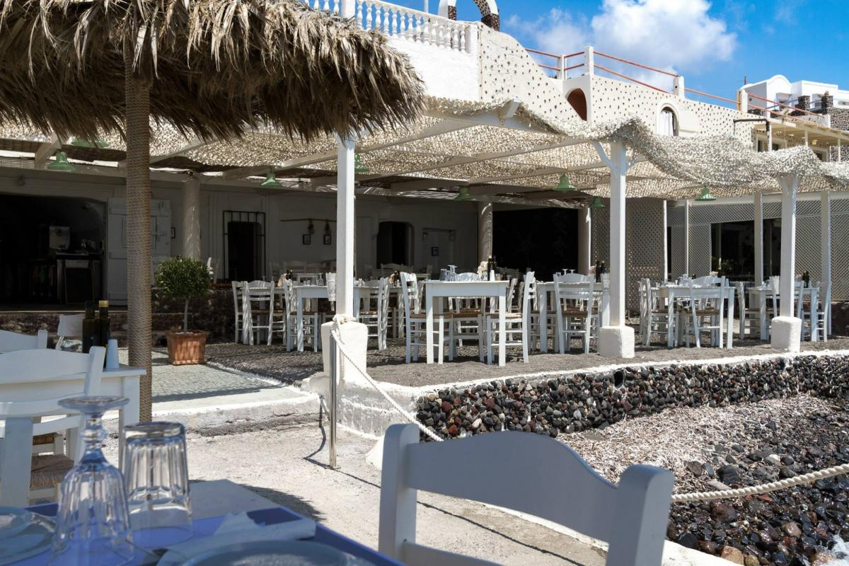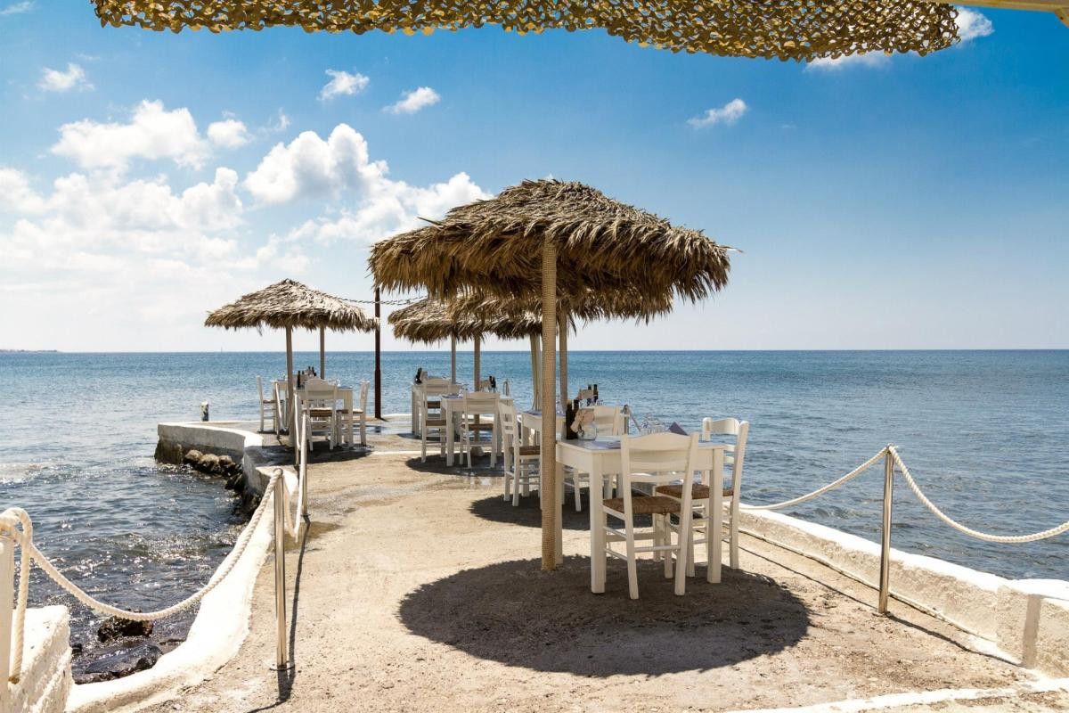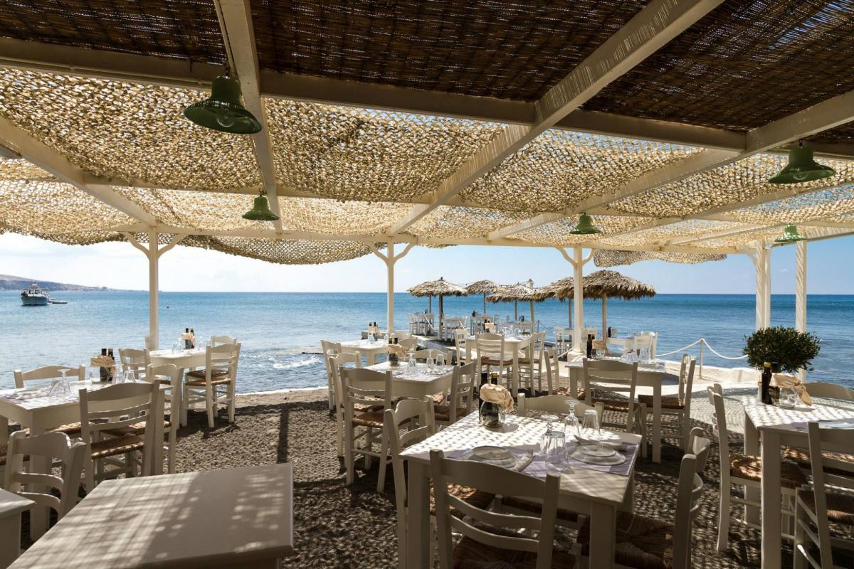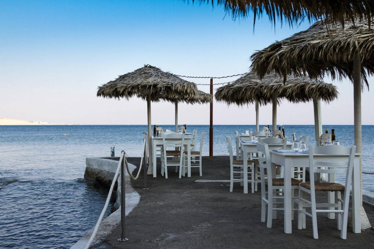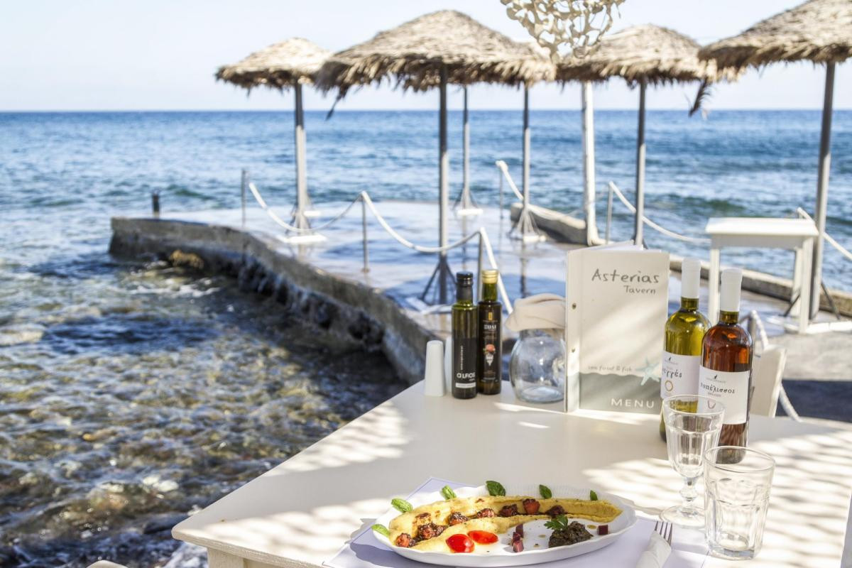 Asterias Restaurant in Akrotiri, Santorini, a breath away from the sea. The small platform literally ends in the sea. Ideal for a romantic dinner for groups but also for families, the restaurant Asterias in Akrotiri, Santorini will fascinate you with the variety and quality of its dishes.