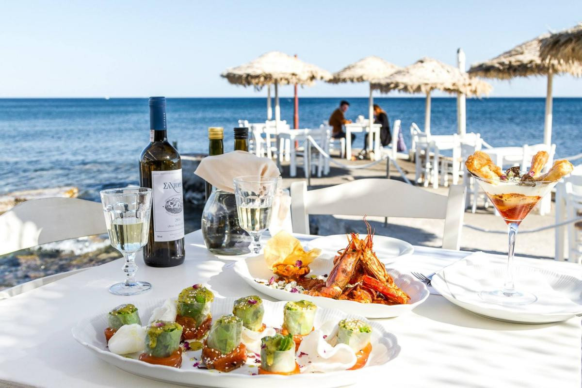 In your "must" selections the lobster with noodles, the octopus carpaccio with herbs, the seafood spaghetti as well as the fresh fish of the day ready to be cooked with your order. At Asterias restaurant in Akrotiri, Santorini, the natural beauty, the flavors, and the aromas will activate all 5 of your senses, as the name of the restaurant symbolically characterizes.