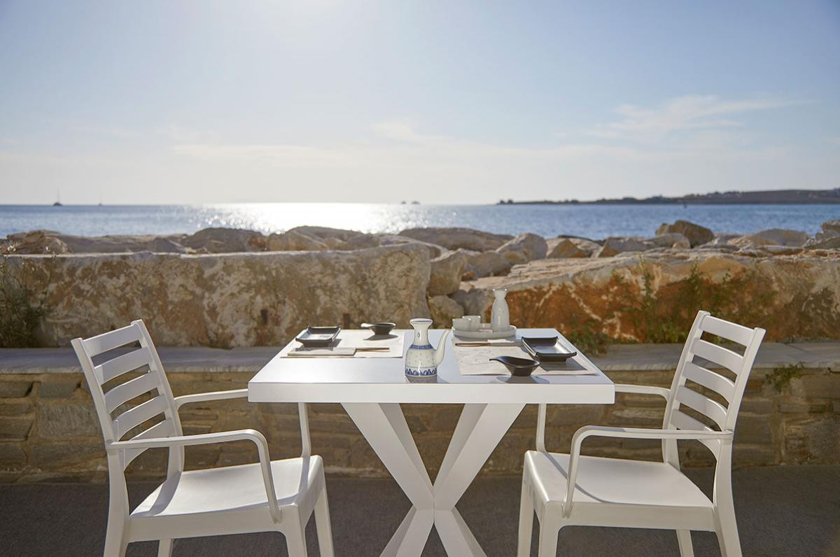Overlooking the beautiful blue of the Aegean Sea and the enchanting sunsets of Paros, in a unique space, fully harmonized with the spirit of the island and the Cycladic architecture, we have created with passion the most favorite hangout in Parikia, Ballo - Aegean Food Bar. Choose with company the large tables, or one of the smaller and more romantic ones to enjoy the beautiful sunset and the enchanting moon. In collaboration with the team of the award-winning Mezen, the first Aegean gastrobar was born, combining ingredients and recipes from Paros and the rest of the Cyclades with characteristic fusion touches by Grigoris Helmis and a list of local special spirits, wines and cocktails by Andreas Diakodimitris.Visit Ballo Aegean Food Bar for an unforgettable Aegean gastronomic experience.