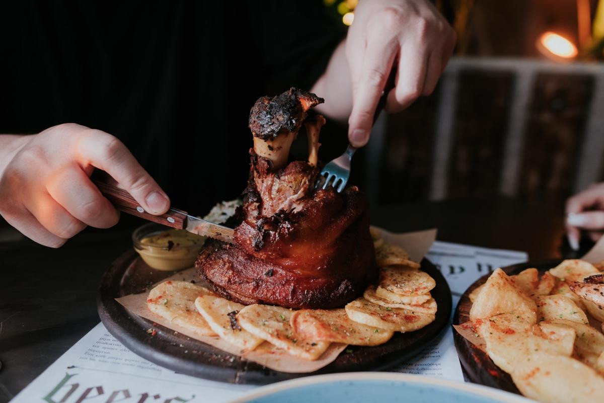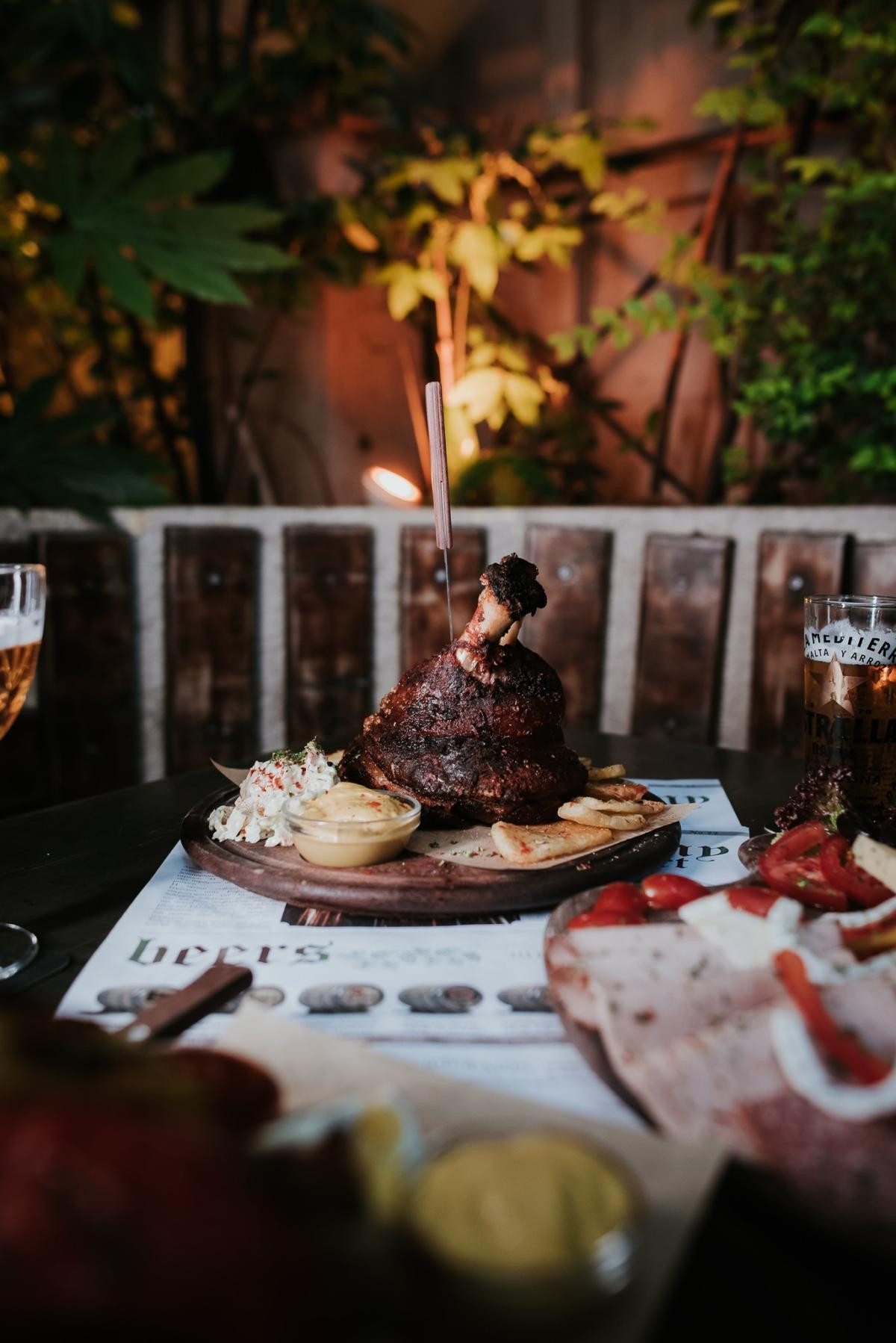 cold cuts and cheeses of famous origin, pork knuckle simmered for 6 hours,