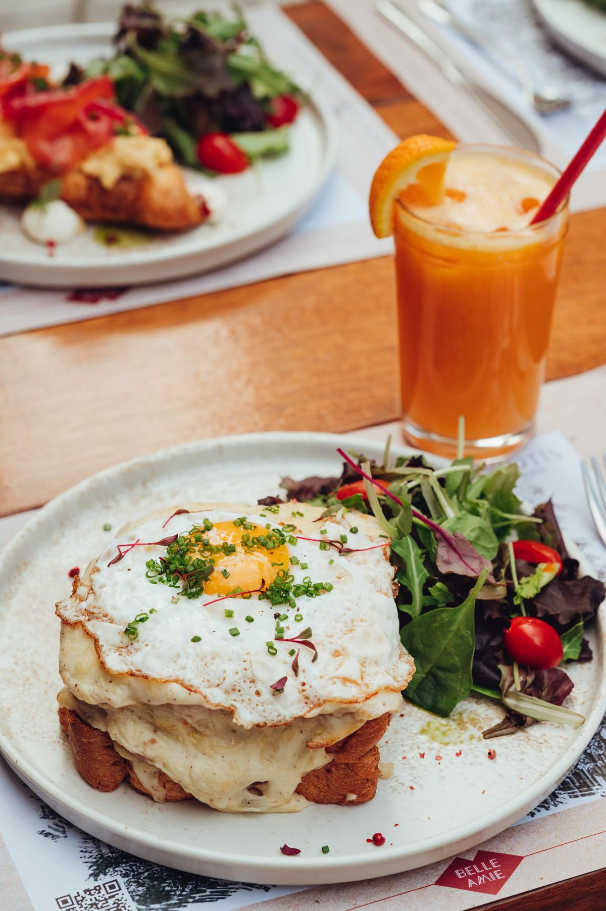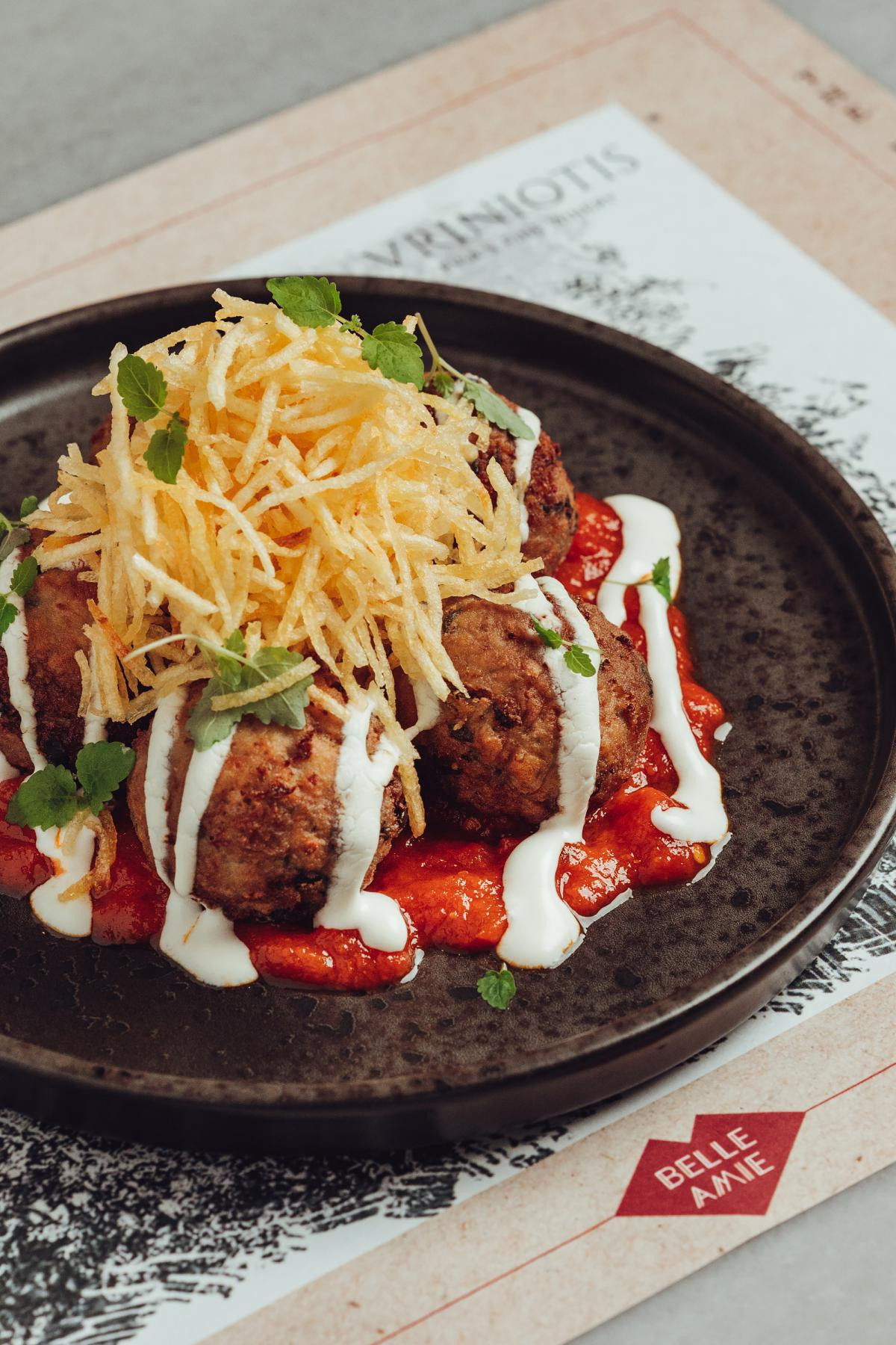 Belle Amie. The ultimate gastronomic experience in the heart of Piraeus. On the pedestrian street of Angelou Metaxas in Pasalimani, Belle Amie, the magnificent neoclassical building, is the ultimate destination for a quality and delicious journey. With the sea breeze embracing you and with the Zea Marina in the background, you will enjoy every day beautiful moments, flavours, images and emotions, in the most beautiful green and blooming courtyard in the heart of Piraeus. Chef Christos Koliagiannis and his team have created an inventive gastronomic destination based on creative traditional Greek cuisine, consisting of authentic local PDO products and fresh raw materials from small producers. In its menu, based on Greek tradition with a modern twist, you will discover unique gastronomic creations that will satisfy even the most demanding palates: Seafood dolmas with fish, Savoy cabbage, bulgur and fennel; Mayan ceviche with citrus, ginger, chilli, corn, coriander and dushi; pumpkin pie with trahanas; rustic leaf, pumpkin puree and feta cream, gnocchi staka with Cretan gruyere and crispy apaki, shrimp tartare risotto with yellow pumpkin and orange, black pork pancetta with hazelnut fava bean puree and mayonnaise with Cycladic chickpea and Lefkada salami. A modern variety of Greek gastronomic proposals, which you can taste as a main meal or share with your friends, combined with fine wines and spirits.The menu is complemented with delightful brunch proposals, which has become a favorite dining habit. It is served daily with special dish selections such as Scrambled and Benedict eggs, Croque Madame, Kayanas, omelets, crepes, pancakes, and many other all day offerings such as bruschetta with gazpacho and marinated anchovies, Shrimp, Chicken or Turkey Bao Buns and delectable burgers.