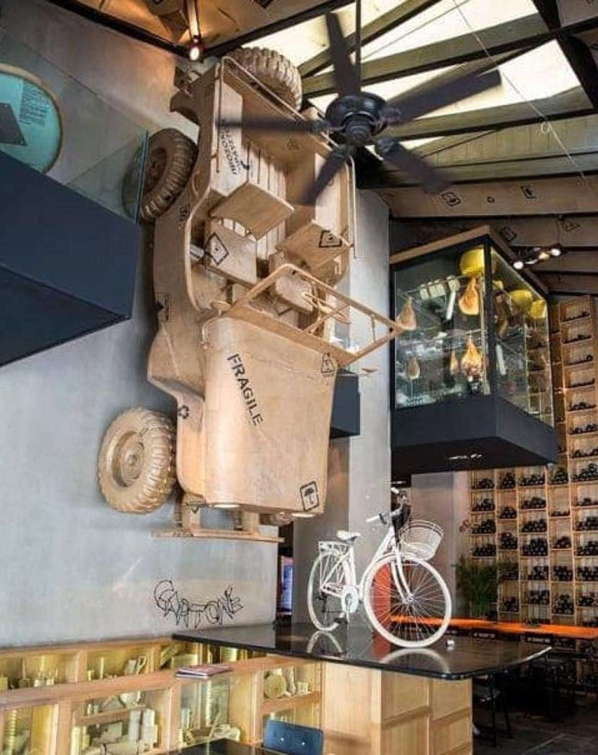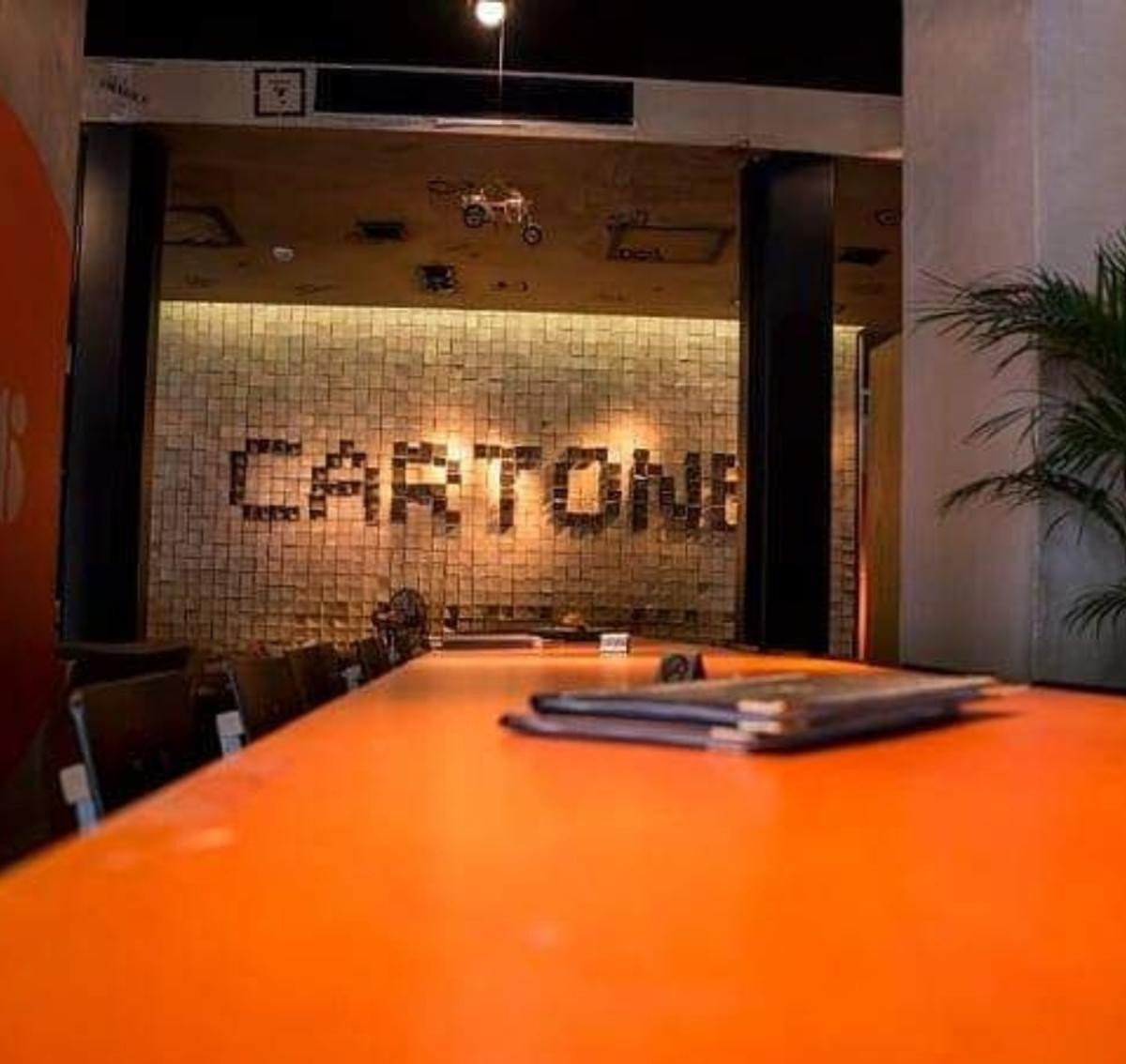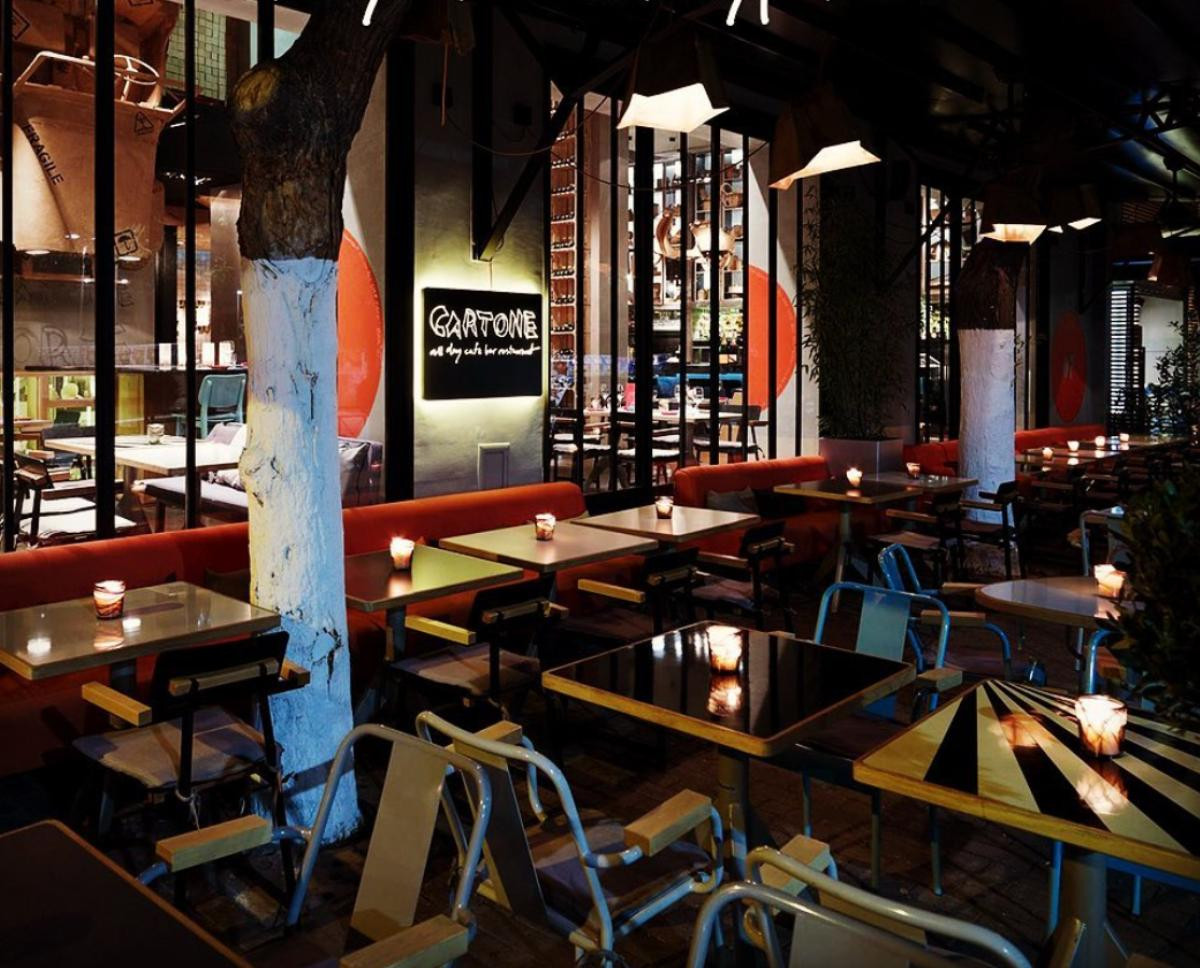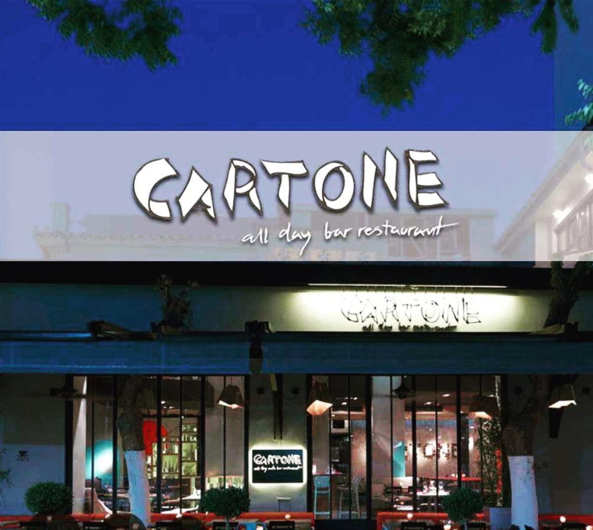 Cartone all day Bar-Restaurant is located in Athens and specifically in Gazi. It is a complete proposal for brown food and drinks. It welcomes you outside with tables against the background of the crowd and inside with a wonderful paper world. In the restaurant's menu you will find pasta , risotto, salads burgers and different kinds of pizza.