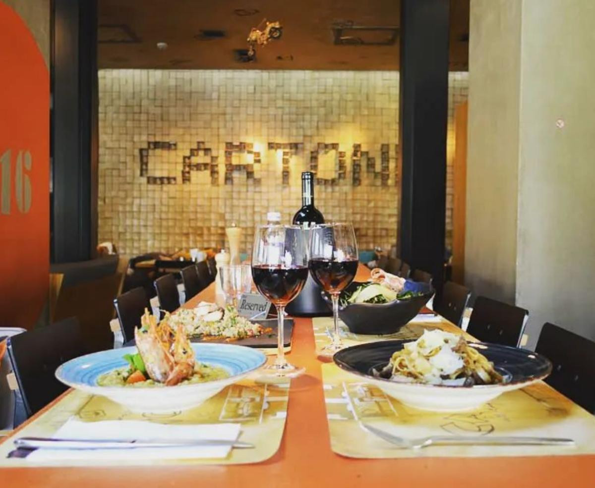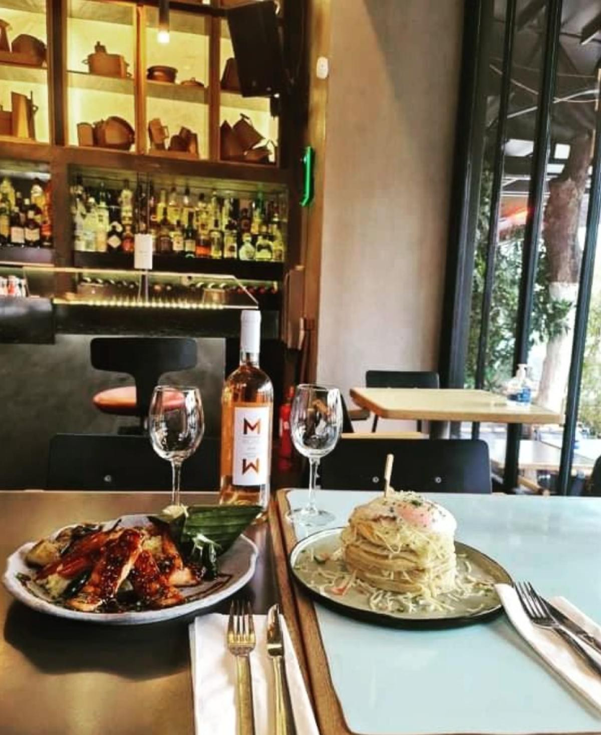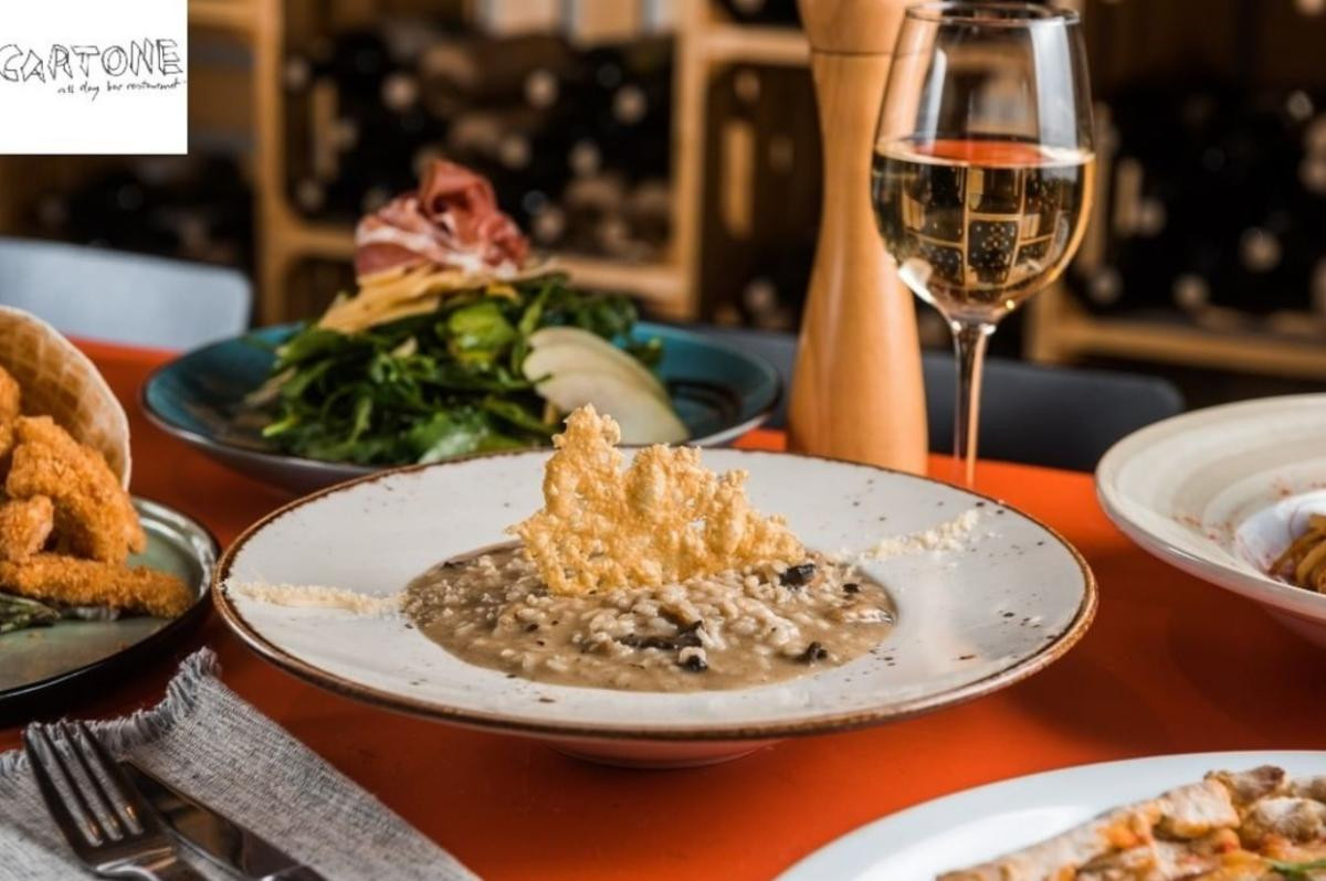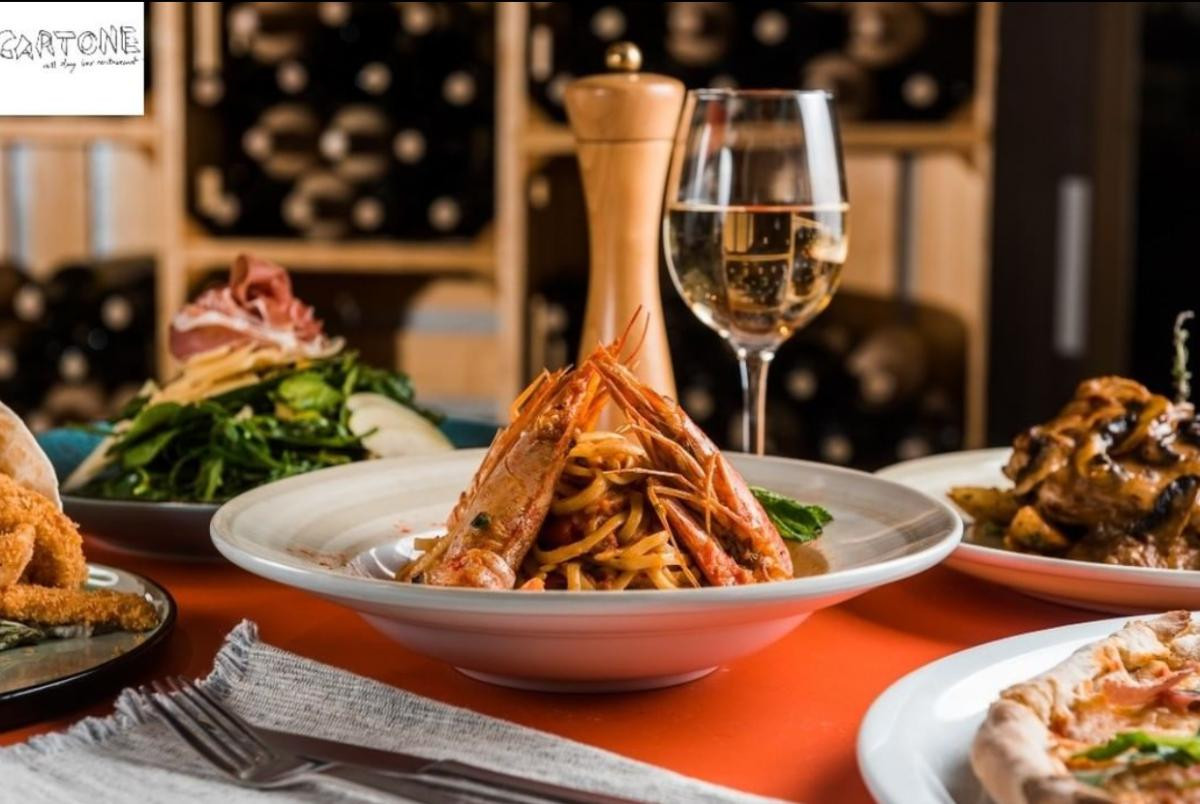 You can accompany your meal with a glass of wine from the wide selection of Cartone all day Bar-Restaurant in Gazi.