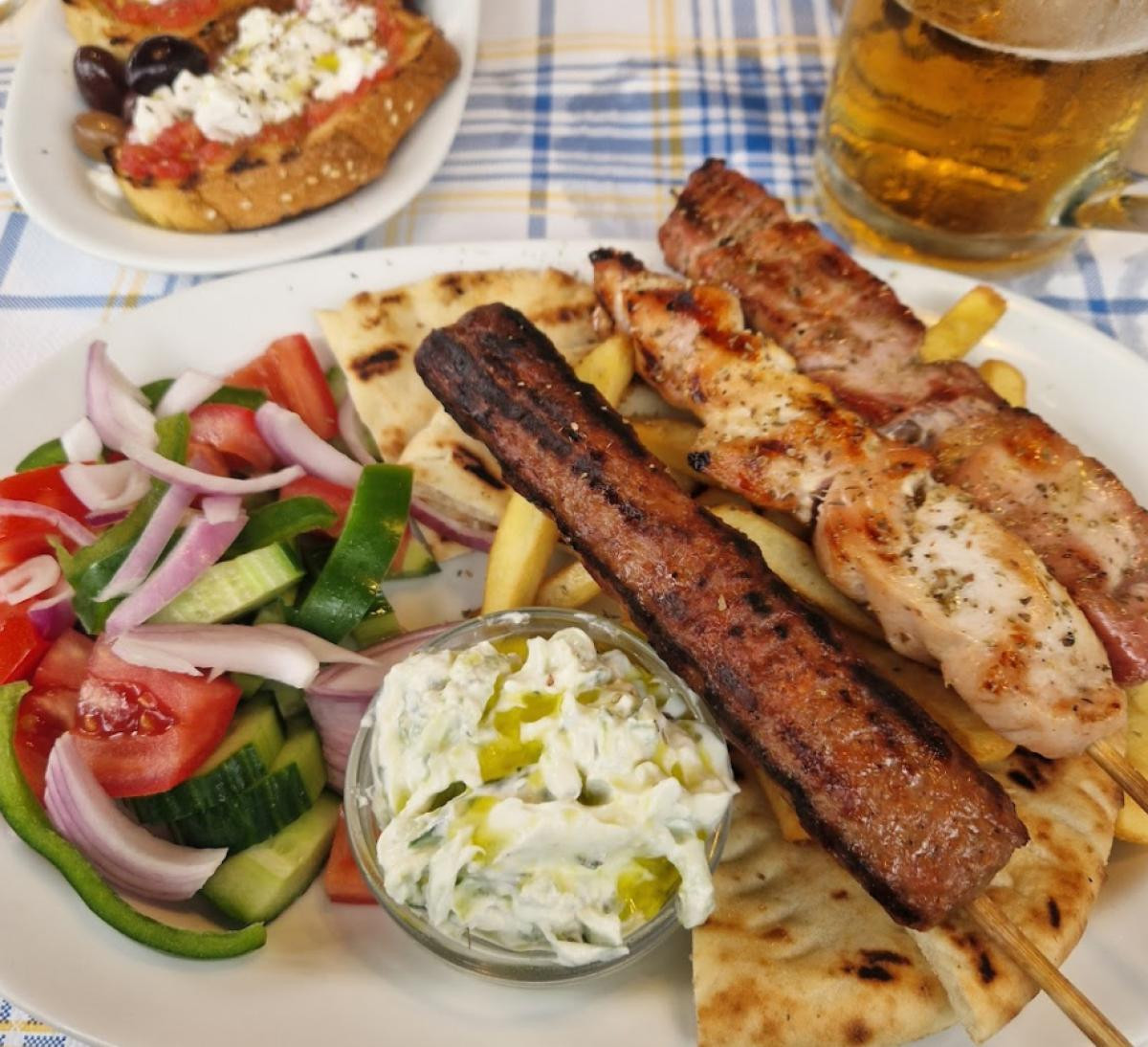 Come To The Grill restaurant is located in Argasi, Zakynthos and awaits you in a beautiful space to enjoy delicious Greek cuisine. Come To The Grill prepares for you well-cooked dishes with the freshest and purest ingredients. You can try fish dishes, well-cooked meat dishes such as kontosouvli, gyros, skewers, lamb on a spit, traditional cooked dishes such as pastitsio, moussaka, macarini with minced meat, but also many other options available at Come To The Grill restaurant. Do not forget to accompany your meal with your favorite soft drink or drink from the options offered by the restaurant. If you want to try Greek cuisine, then you should definitely visit Come To The Grill in Zakynthos!