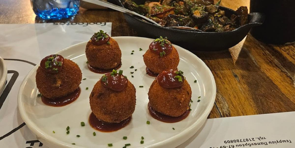 Welcome to Foofootos restaurant.On the border of Zografou and Goudi, at 67-69 Georgiou Papandreou Street, there is a very special taverna, one of those that you will always find full, with people with huge smiles of pleasure painted on their faces. But it is not a tavern like all the others. Foofootos is a mezedo-baraki that combines modern creative cuisine with Greek culture.From the restaurant's menu, start with the saganaki of Kaskavali (Lemnos cheese), wrapped in a crispy corn crust,tied with sweet lemon, giving it the necessary intensity and aroma to the dish. Try also the delicious chickpea fritters, with tahini, lime and coriander sauce, and the sour trachana with mushrooms and Mani's ceglino. Moving on to the main courses, don't miss the grilled liver with carrot puree, the juicy chicken short ribs with spices. Accompany your meal with warm drinks based on tsipouro or wine, flavored with herbs of the Greek countryside and honey of flowers, which will warm you in winter, cool beers bottled or draught and ouzo for all seasons. Visit Foofootos tavern in Zografou and enjoy unique dishes with explosive flavours that will surprise even the most demanding palates.