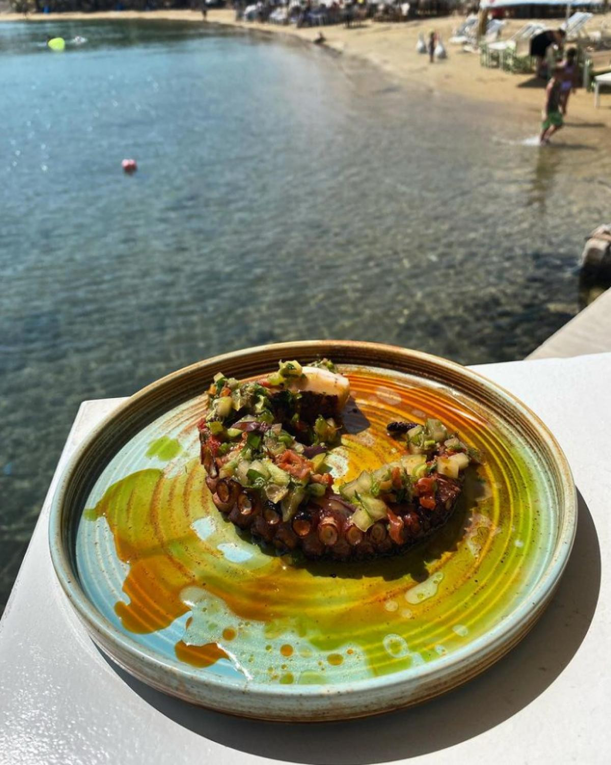 Poulpe très bien cuit et excellent dessert fait par la maman du propriétaire