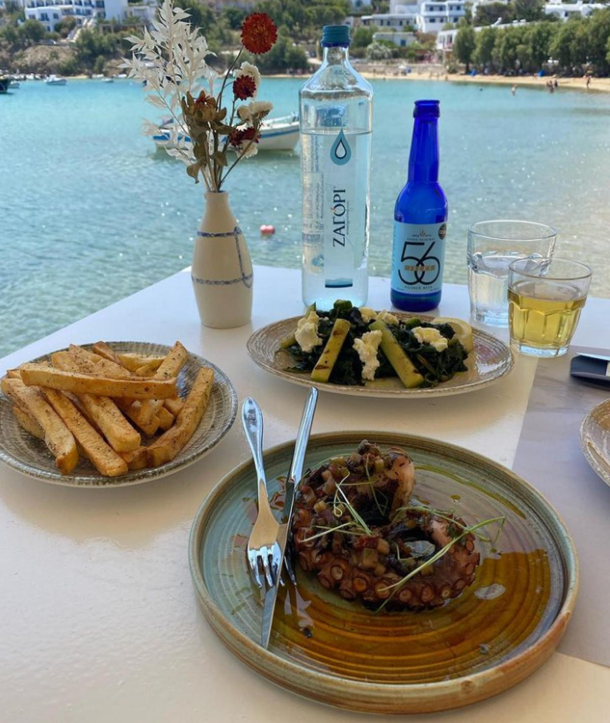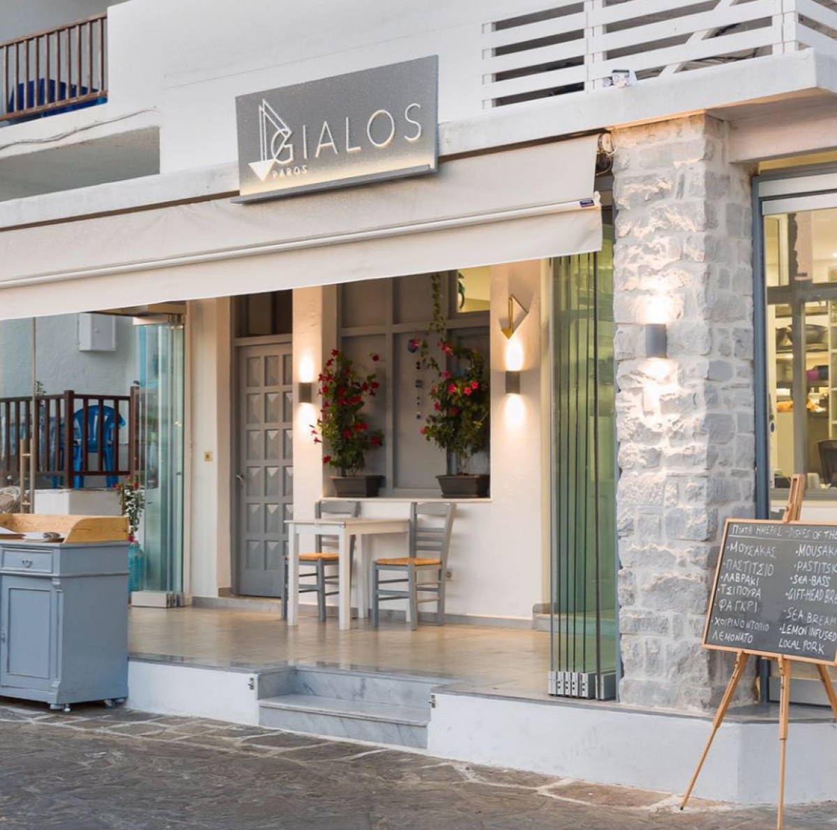 Welcome to Gialos restaurant. It is located in Paros and is a picturesque restaurant in the quiet Piso Livadi for those looking for Mediterranean flavors with a view of the harbor. Here, you will enjoy Parian cuisine in its modern version through simple flavors and seasonal ingredients. From the menu of the Gialos Paros restaurant you can enjoy fresh fish, in the pan or on the grill, amazing combinations of pasta and seafood, but also local goods are the ones that take the lead, surprising even the most demanding. You can also accompany your meal with a glass of good wine from the restaurant's wine label list. Gialos Paros is the most ideal restaurant if you are on vacation on the island, as it combines explosive flavors with a view of the green waters of the harbor that will surely impress you.