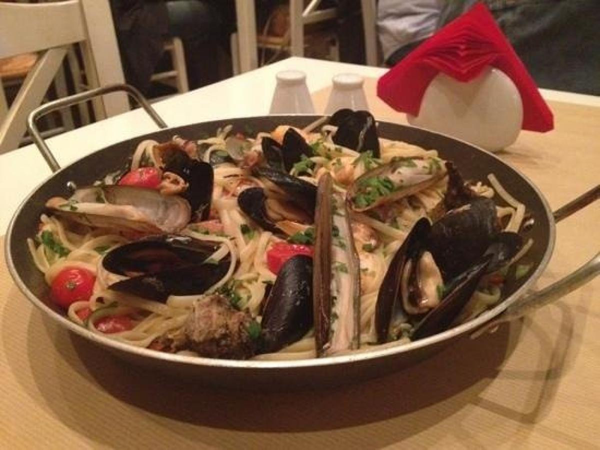 spaghetti, the fresh shrimp, and especially the grilled squid. All this