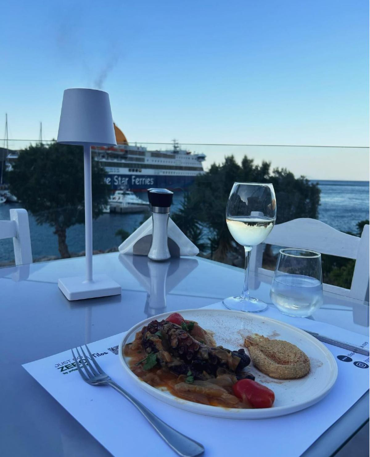 The restaurant's cuisine is based on local products and fresh ingredients. Guests can try a variety of traditional Greek dishes such as, fresh seafood, fresh fish and seafood caught daily by local fishermen, local meats, tasty meat dishes, cooked according to traditional recipes, vegetarian options, a variety of salads and appetizers with fresh vegetables and local herbs.
