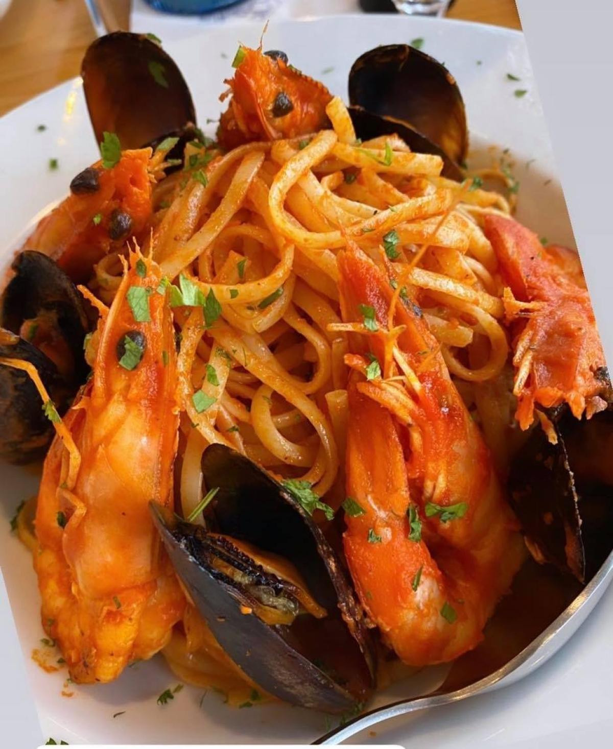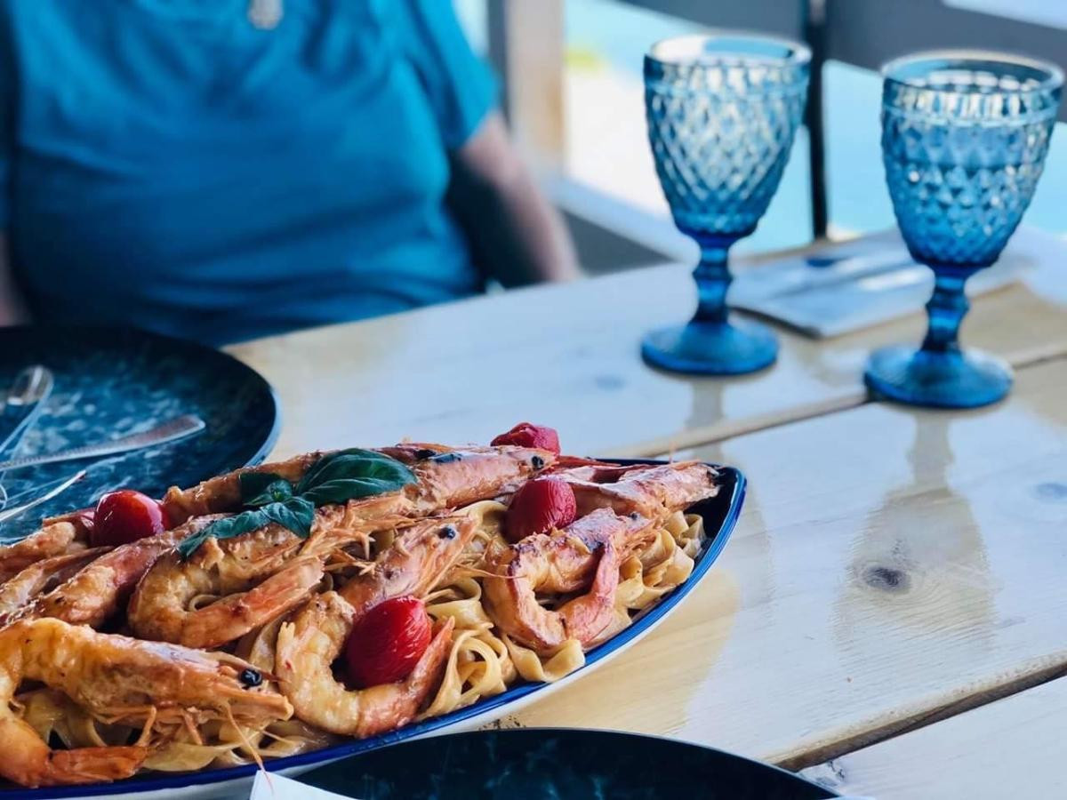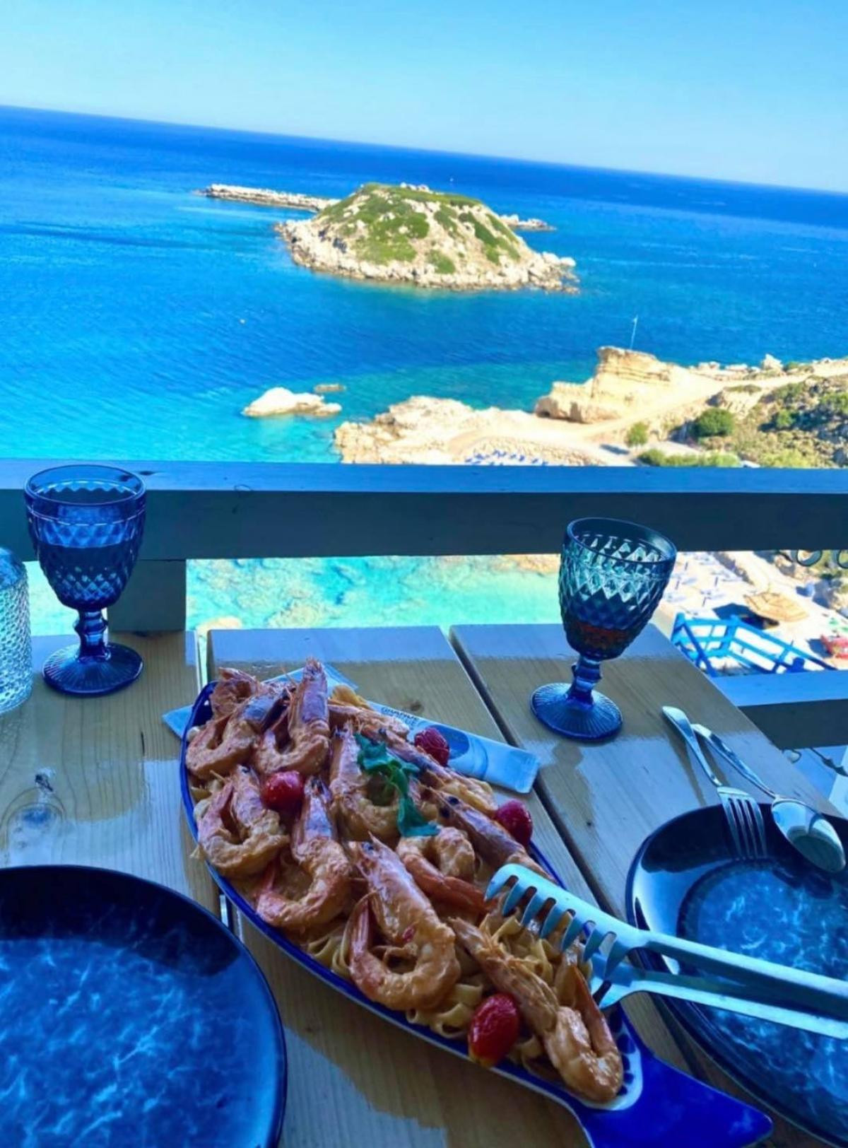 Shrimp spaghetti with ouzo, fresh fish of the day and do not forget to try the rosettes (small fish) accompanied by garlic and Rhodesian local wine. at GRANDE BLUE SEA RESTAURANT in Archangelos of Rhodes. Mrs. Marina will always be there willing and smiling to serve you, while you will travel to the endless blue of the sea. SEA FOOD RESTAURANT GRANDE BLUE RHODES, an experience of seafood.