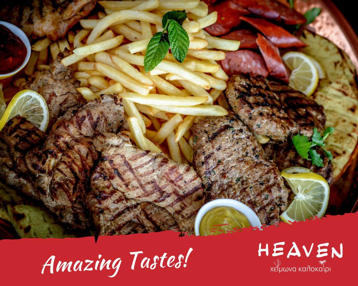 The Heaven's in Heraklion spaces are modern and welcoming, with an exterior of Caribbean notes and an interior full of warmth and elegance. Whether after the bath, or after a long day at work, what better than a delectable oriental banquet, a pendant heaven, and the favorite of most "pie made on your own", with chicken and pork fillets, tortillas, 3 dips, fresh salad, spicy potatoes, fried potatoes and grilled vegetables. Test your imagination and creativity and make the most enjoyable brunches for you and your company. Lastly, as Crete and nightlife are 2 concepts intertwined, your night at the All Day Cafe Bar Heaven can end with a cool cocktail, with soothing music.