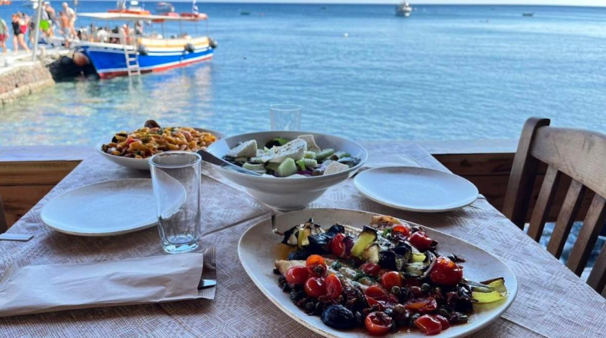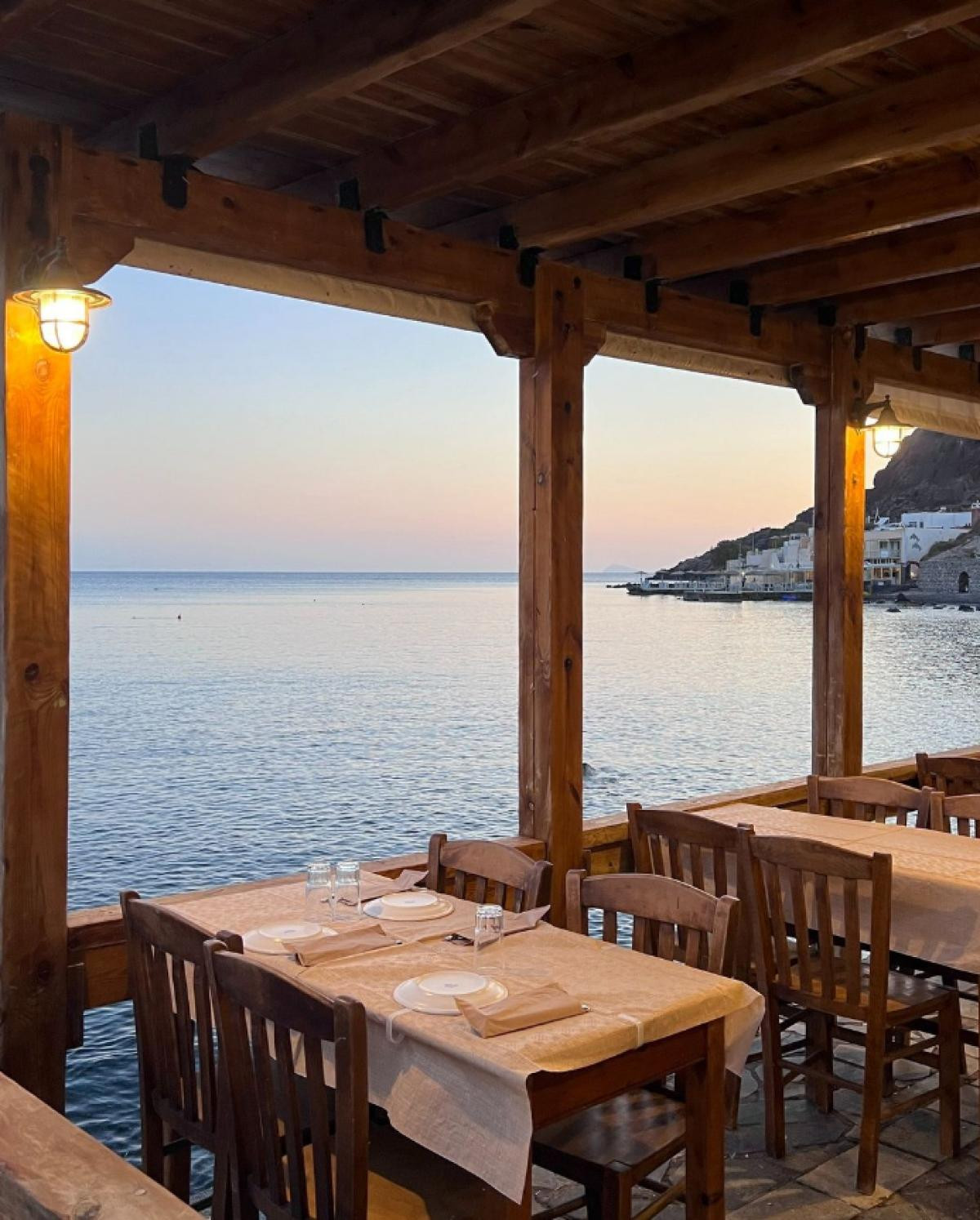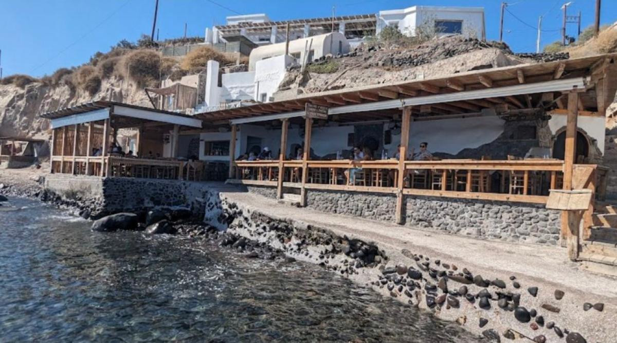 Location meravigliosa, tavoli a ridosso del mare. L'interno è molto caratteristico, cassette con le verdure a vista, selezione di vini, tutto dentro una "cave" ex deposito di barche. Il personale è estremamente cordiale, parlando benissimo diverse lingue, tra queste anche l'italiano. I piatti sono essenza della ottima cucina greca, ci siamo trovati talmente bene che siamo andati tre volte a mangiare perché c'è da provare qualsiasi cosa del menù, è tutto buono ed abbondante. Il rapporto qualità-prezzo è eccellente. Tra migliori, se non il migliore, ristorante greco di Santorini