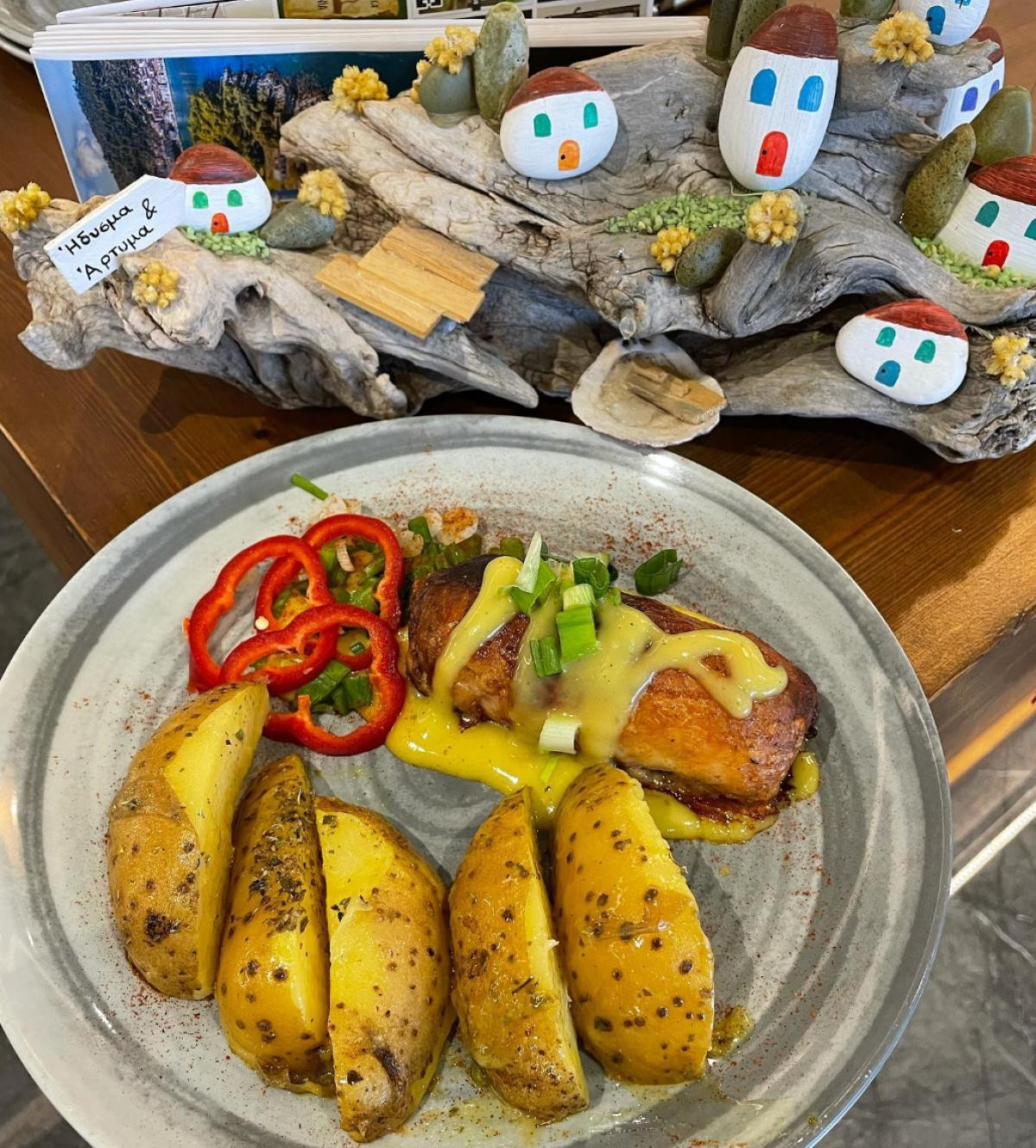 In the elegant space of the restaurant, you will enjoy seafood flavours with dishes of fresh fish and seafood that you can combine with a good wine from the choices offered by the restaurant Idisma & Artyma. In the restaurant's menu you will find fresh fish but also many choices of seafood accompaniments, juicy pasta and seafood pasta for a complete delicious meal with your company!