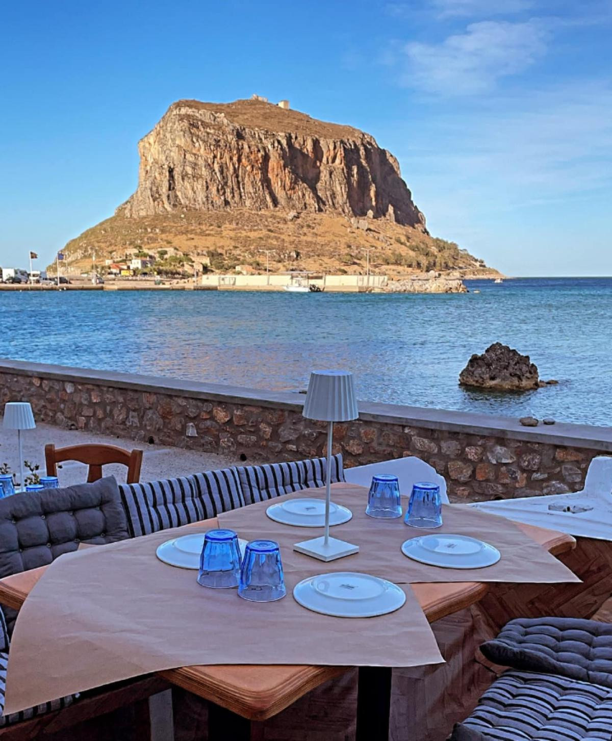 Enjoy your meal at Idisma & Artyma restaurant with a view of the impressive rock of Monemvasia that will surely impress you...