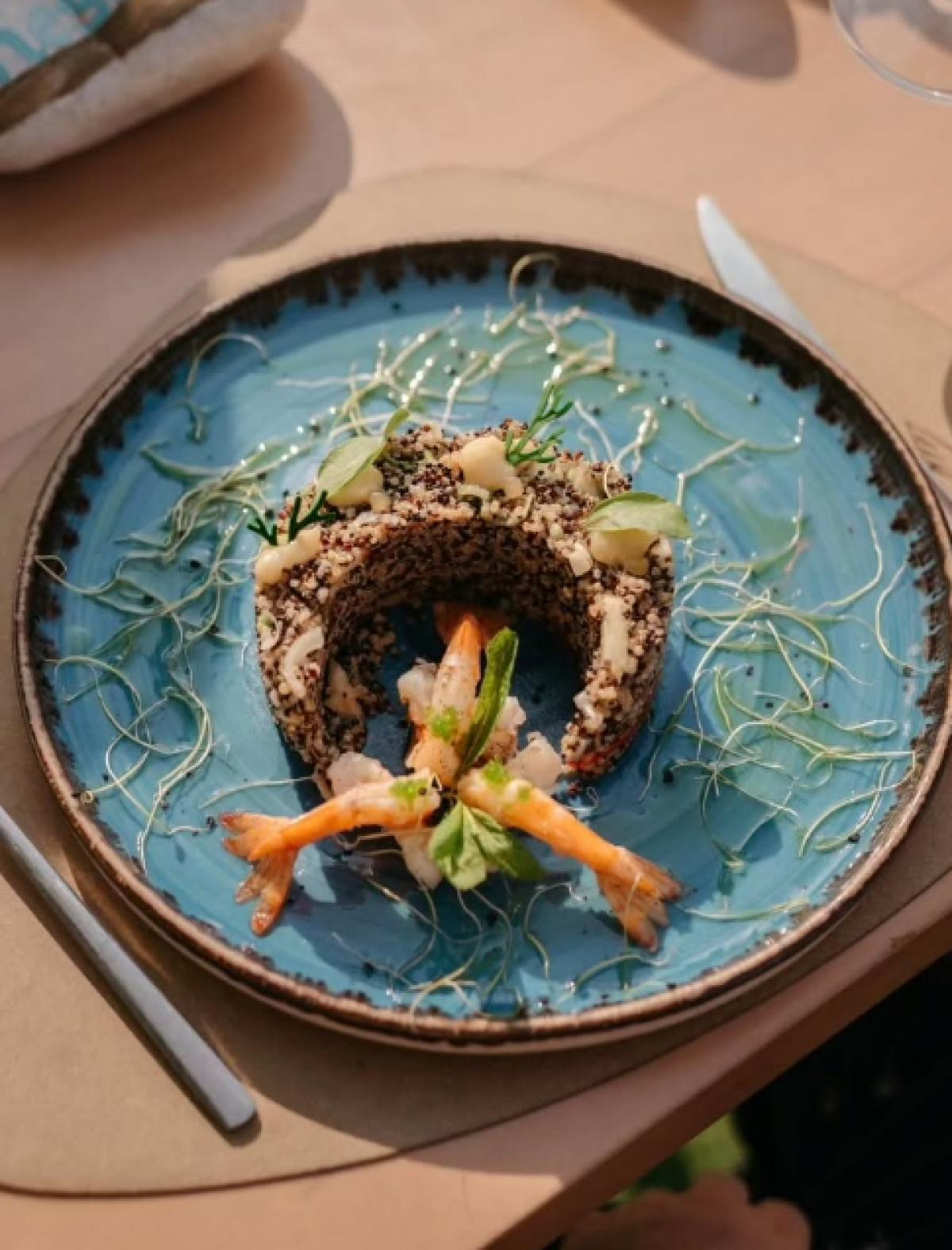 The restaurant's menu includes creative dishes inspired by Mediterranean and international cuisine, with an emphasis on fresh, local ingredients and seasonal flavors. Fresh seafood, selected meats, hearty salads and fine wines compose a complete tasting proposal for each guest. The service is impeccable and friendly, making the guest feel special from the first moment.