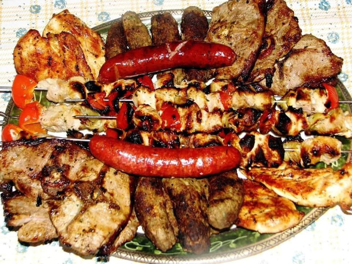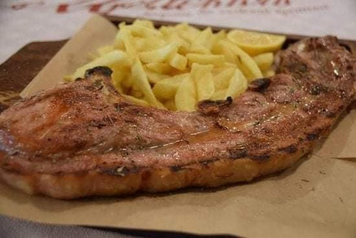 with vine leaves, the delicious stavalis steak, the beef steak with milk, and