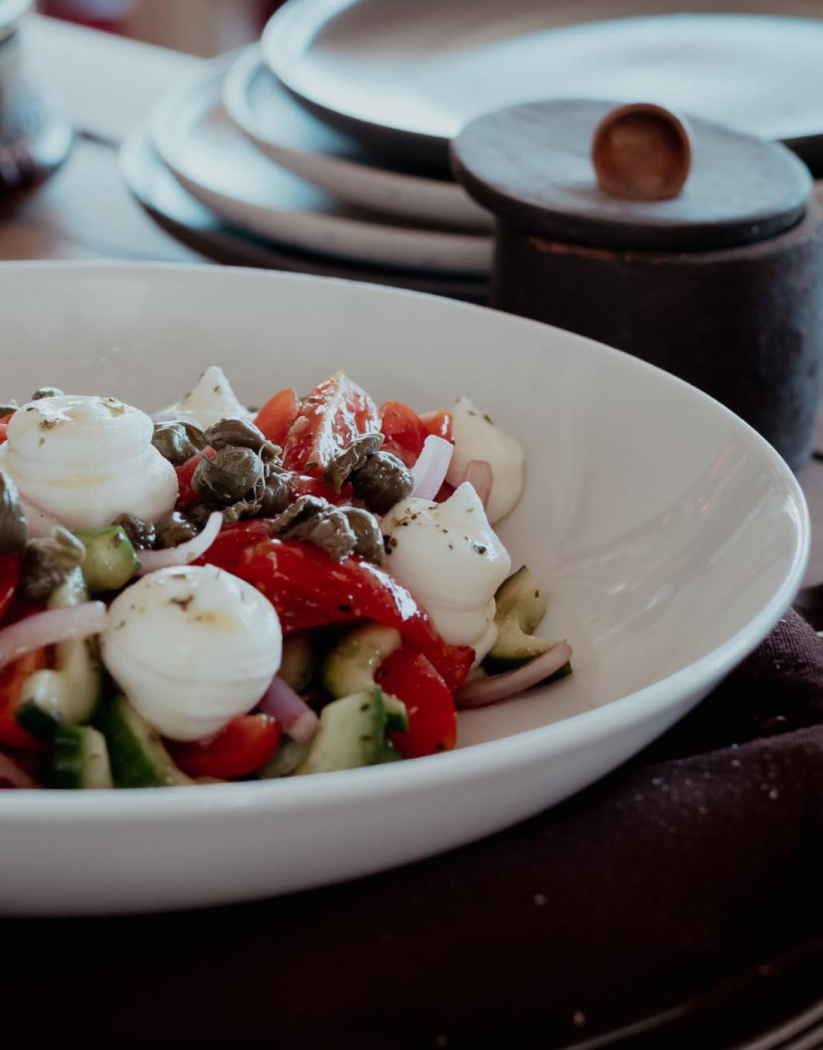 Conveniently located between Fira and Firostefani, Kokkalo Restaurant welcomes guests with a stylish yet relaxed atmosphere, offering a modern take on Greek hospitality. The interior is carefully designed, combining elegance and comfort, while the service is known for its warmth and professionalism.