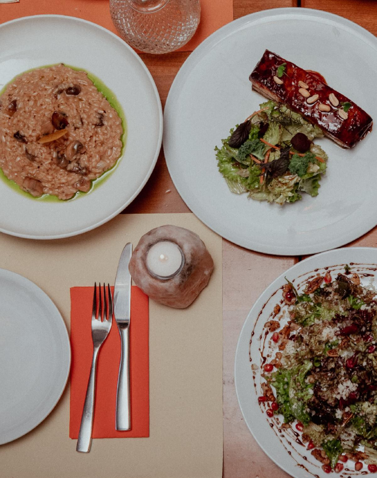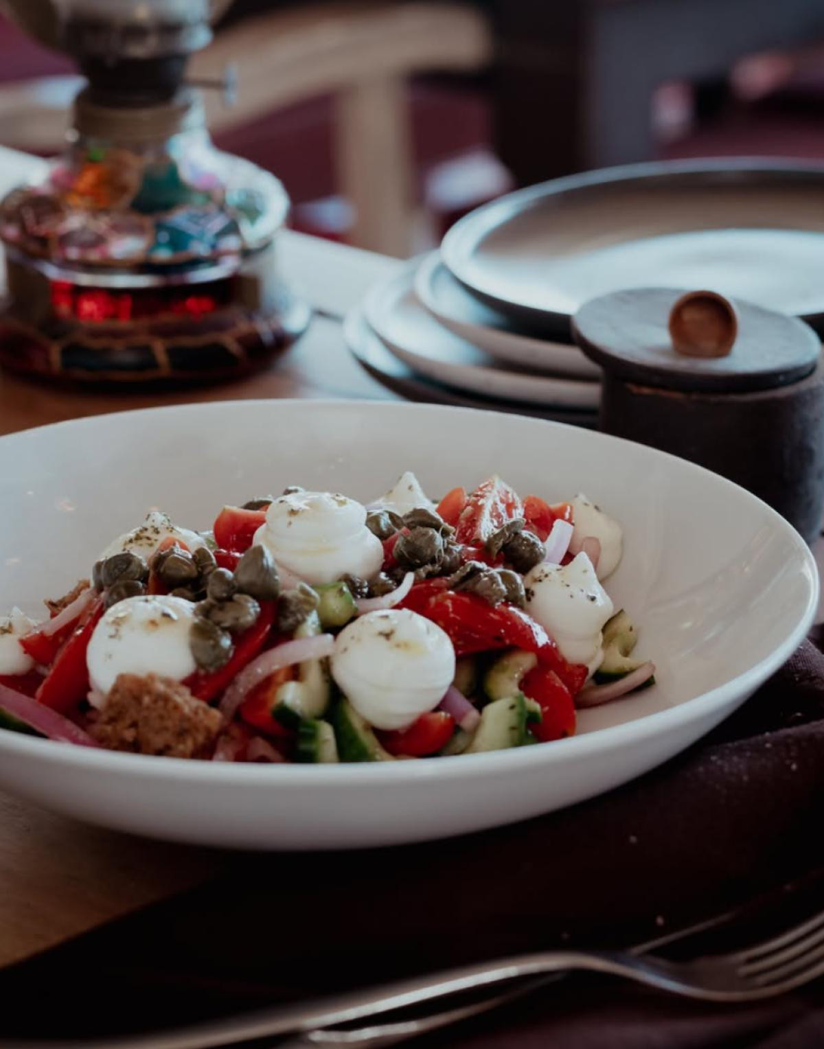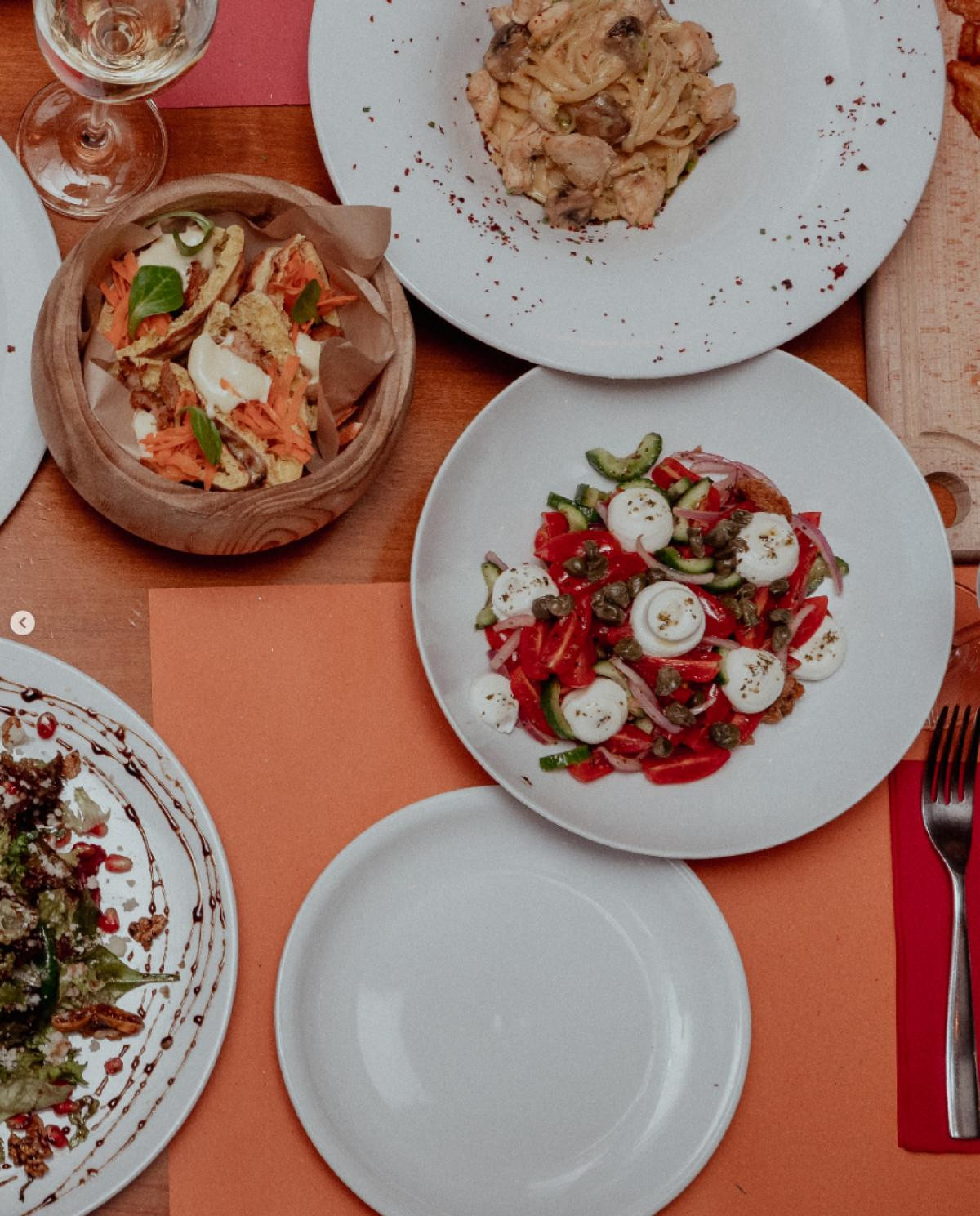 The menu focuses on Mediterranean and Greek cuisine, using fresh, locally sourced ingredients. Dishes include a variety of meat, seafood, and excellent vegetarian and vegan options. With creative presentation and refined execution, the culinary offerings strike a perfect balance between tradition and innovation.
