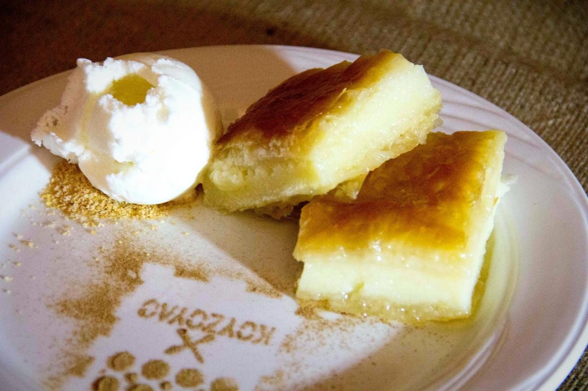 The menu offers you many options, and we suggest you to try for appetizers the potato salad "Kouzulo", the Sfakian pie, Dakos with anchovy marinade, baked cheese and saganaki gruyere with honey, while for the main course do not miss the cous cous grilled zucchini, eggplants,asparagus, red pepper, black currant and basil pesto. For dessert, definitely try "Kouzulo" galaktoboureko with ice cream. All this accompanied by a traditional Cretan raki!