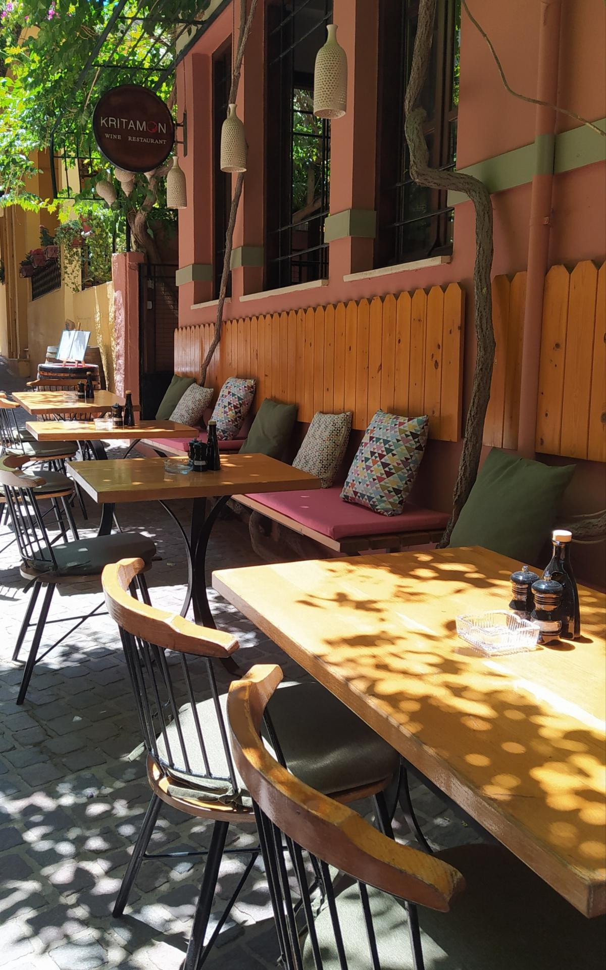 It's beautiful courtyard will cool you down on hot summer evenings while you enjoy the creations of the chef at Kritamon wine Restaurant in Chania.