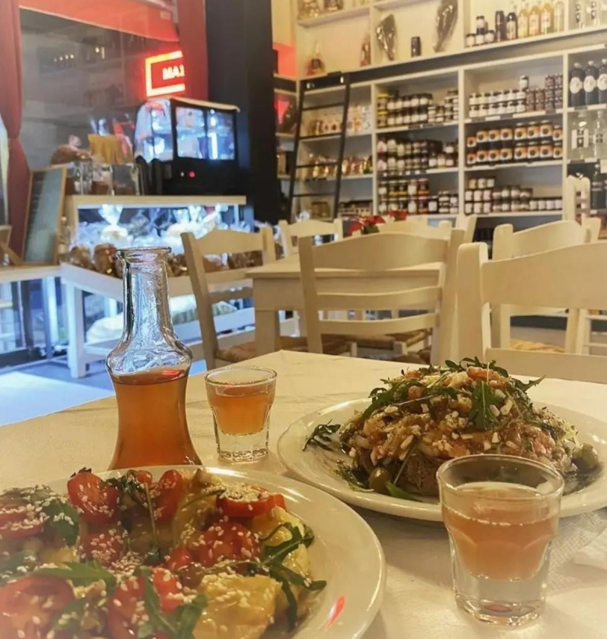 The shop is ideal for those who want to enjoy appetizers accompanied by good Cretan wine or tsikoudia, with live music in the background, creating an authentic Cretan experience in the center of Piraeus.