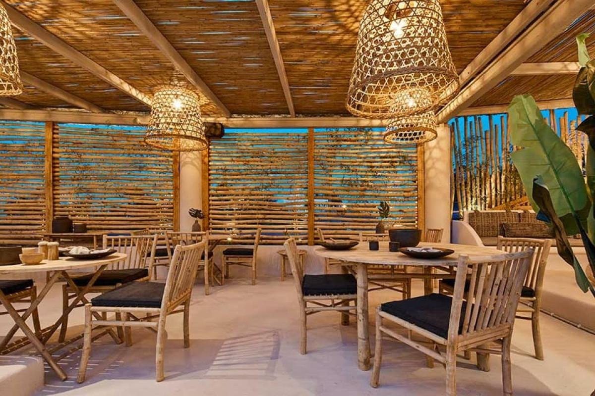 LAZE COMFORT CUIZINE & COCKTAIL BAR at Baxedes beach, a magical volcanic beach of Santorini is located at Laze Comfort cuisine & cocktail bar. In a summer concept with a boho approach, with a palette of different colors, textures, and designs, Laze really is a set of harmony and aesthetics capable of rejuvenating body and spirit. The kitchen under the supervision of chef Stratigos Ioannis offers a creative Mediterranean menu that is combined with a fully updated without being extensive wine list with emphasis on the Greek vineyard.