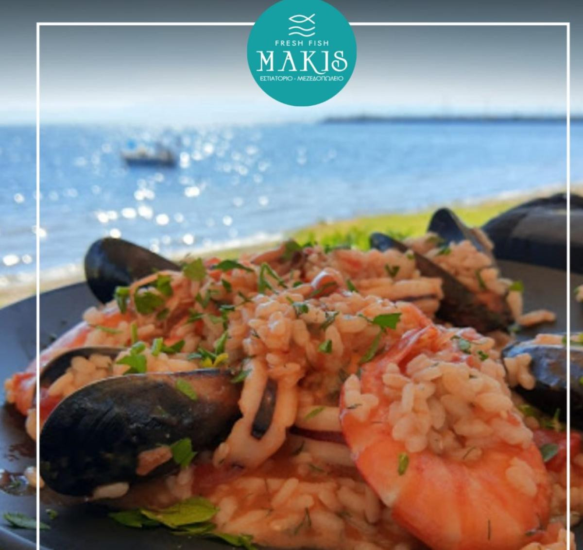 Located on the beach of Epanomi, overlooking the harbour of the area, you can enjoy your meal while gazing at beautiful sunsets every day. Makis Fresh Fish stands out for its quality and for its unforgettable meals.Unlike other restaurants in the area that close during the winter months, Makis Fresh Fish remains open throughout the year, offering a steady catch of the waters of Epanomi, delicious fish that stand out for their taste. The restaurant's lounge, which operates right next to the sea, is an ideal location even for your cold winter visits, as it offers proper heating and ideal warmth to enjoy your meals.Every Saturday, in fact, at Makis Fresh Fish you can enjoy your meal accompanied by live Greek music.