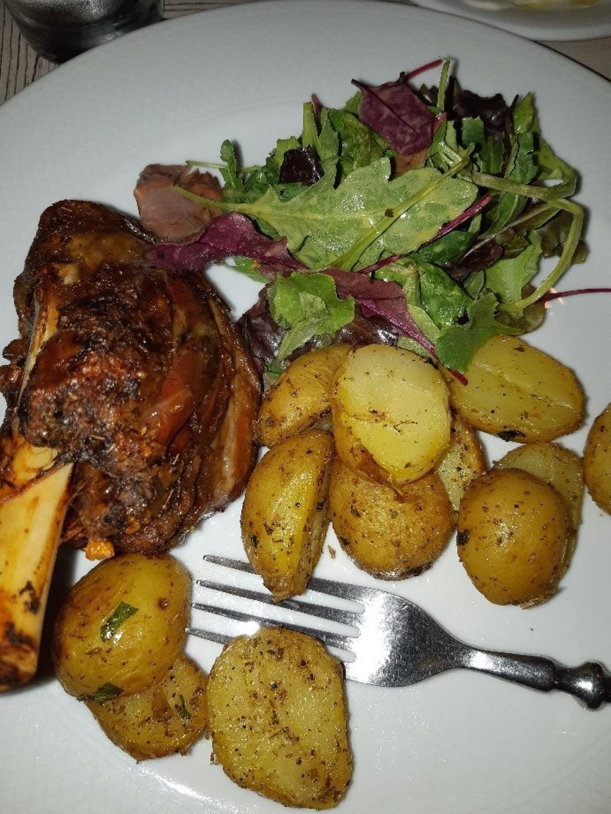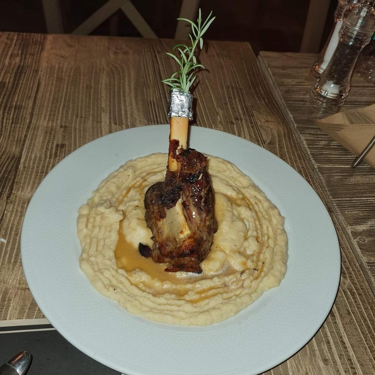cod donuts with potato beetroot cream and tarama. Risotto ala polita is the