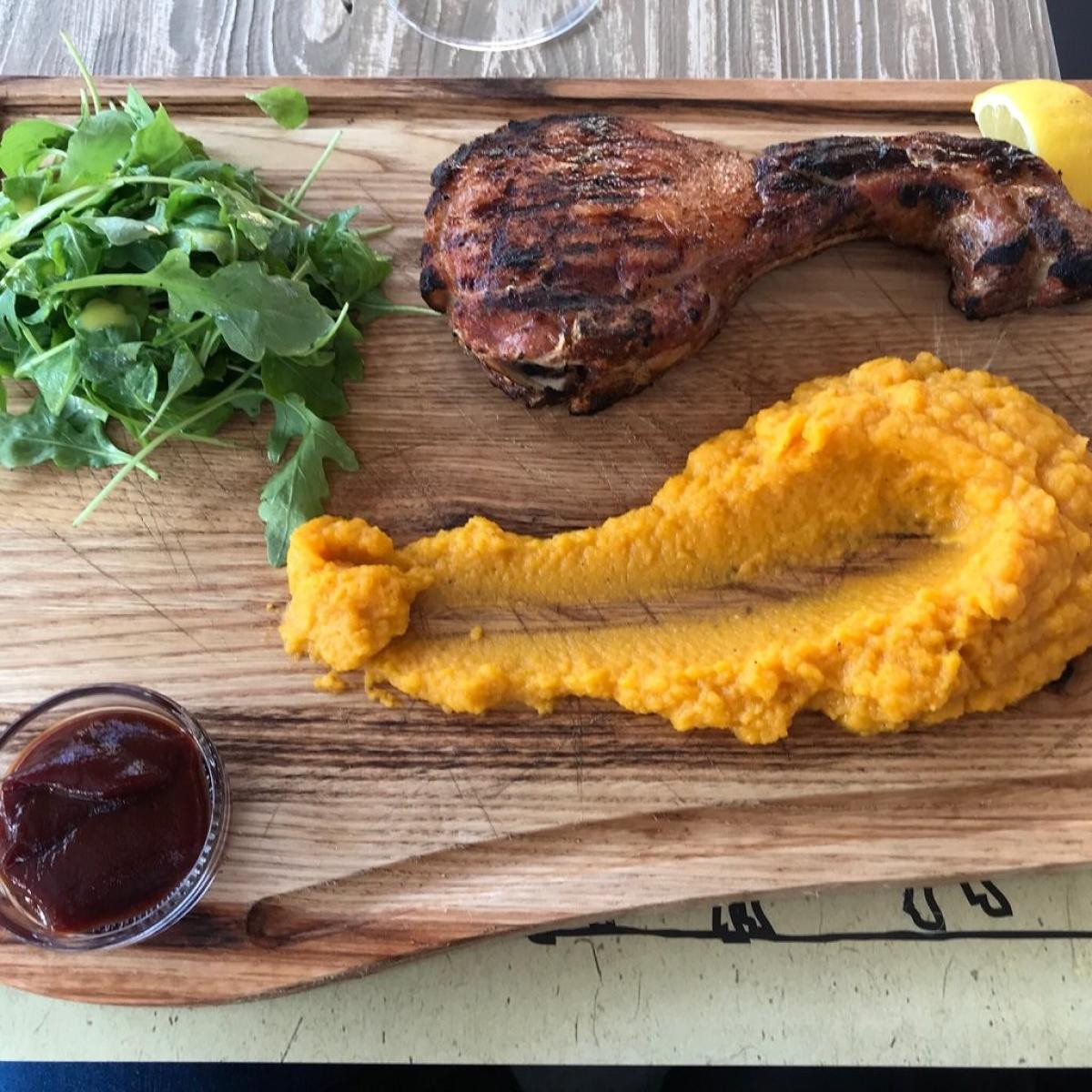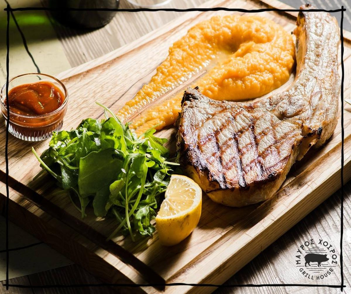 in marinade served with fresh apple fries. Black Pig excels in both taste and