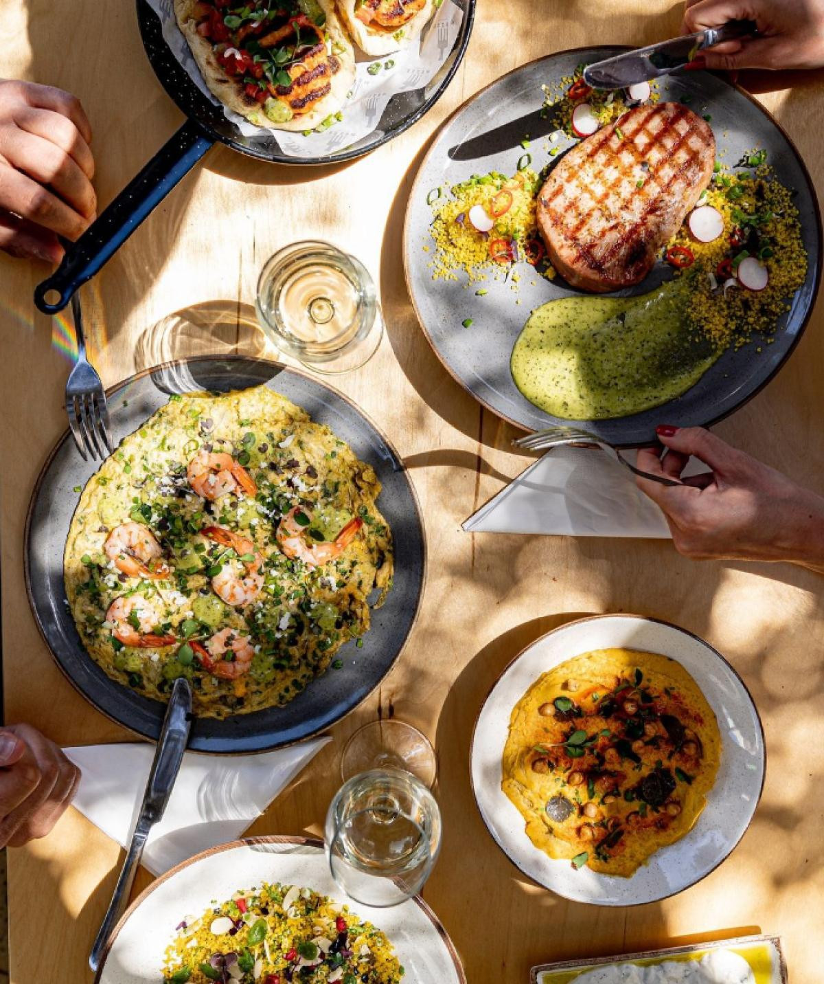 The warm welcome is followed by traditional Greek dishes that marry yesterday with today and reach the middle of the table to be shared with special friends. Try table skewers with chicken, milk veal or salmon, for meat and seafood lovers, cool, fresh and aromatic salads, braised juvetsaki with shrimps, whole fresh sea bream baked in a salt crust, mushroom pilaf with smoked pancetta and delicious appetizers, favorite eggs eyes with fried potatoes and authentic Cretan apaki and mezes reminiscent of home feasts and created with only the best raw materials, combined with the highest quality spirits and invite you to a unique journey around Greece! Homemade sweets that will delight even the most demanding palates, such as the delicious broken millefeuille, come to complete the menu of delights!