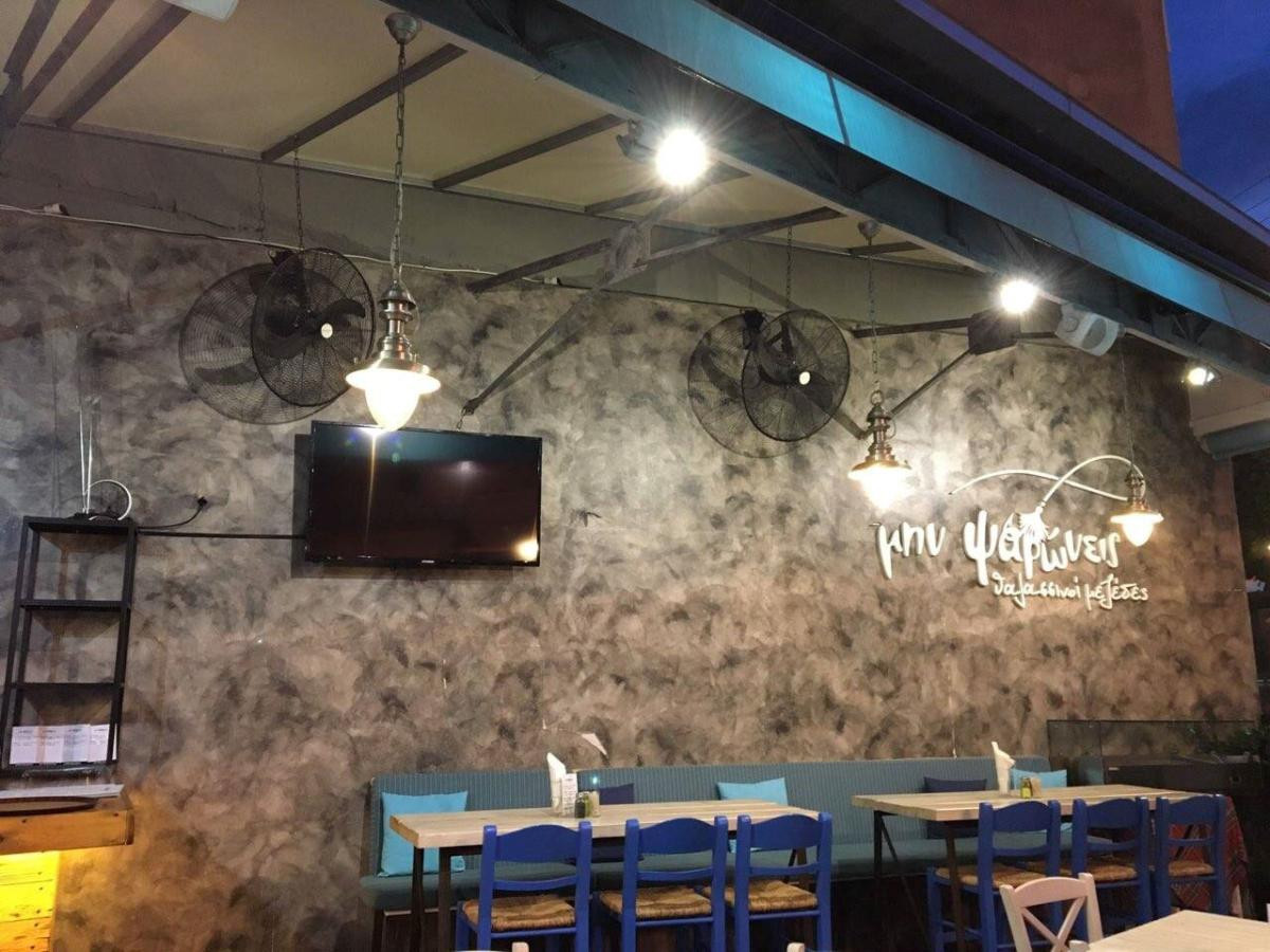 Min Psaroneis restaurant in Peristeri is the perfect choice if you are a lover of Mediterranean cuisine and especially fresh fish. Space modern, with island color in white and blue. The cement mortar that we are used to seeing in the Cyclades combined with the decoration of the interior with reeds and brush strokes gives you the feeling that it is not in the Veaki pedestrian street in Peristeri but in an Aegean setting.