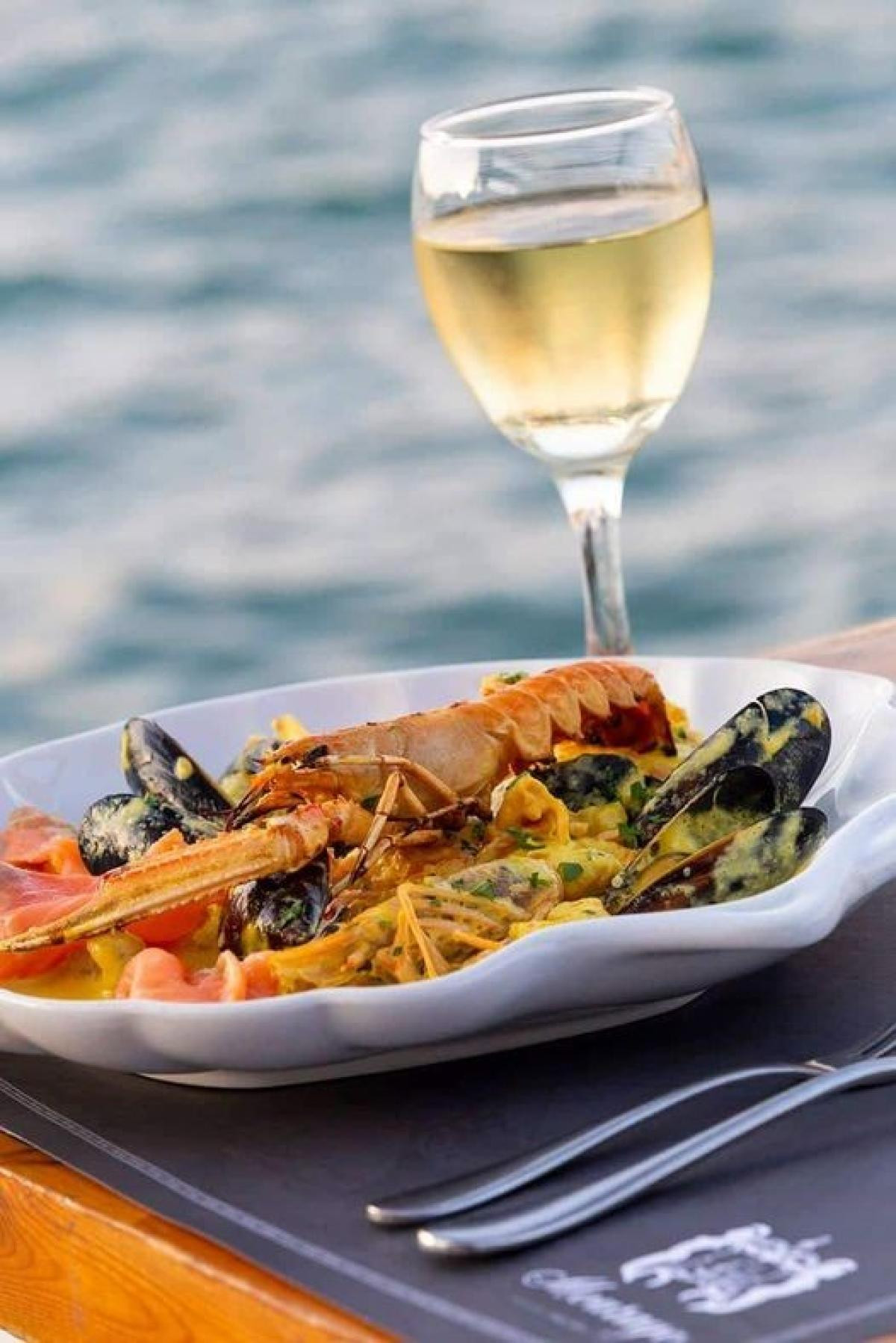 Food very good, kind service, lovely spot, nice terrace right in front the sea.