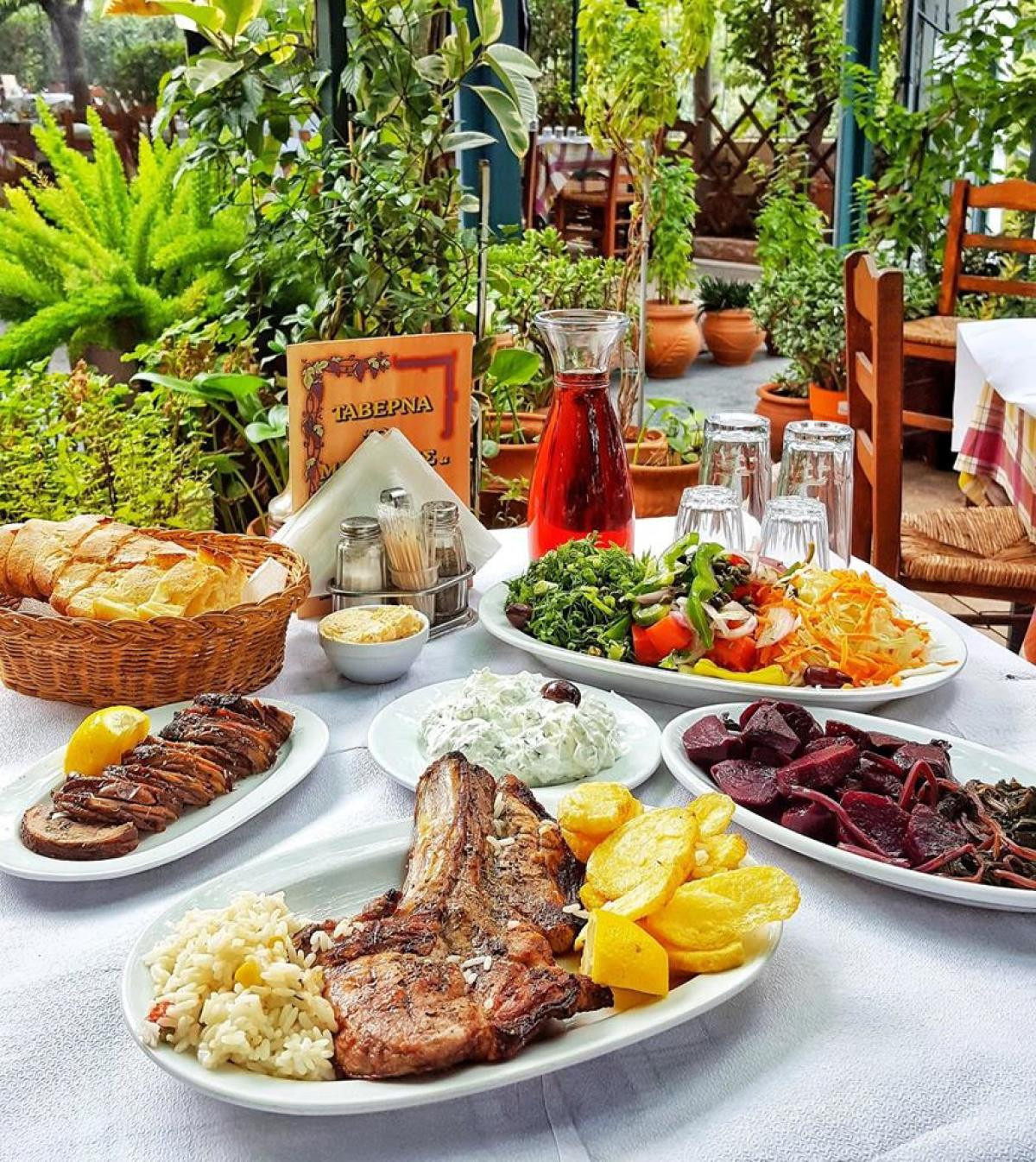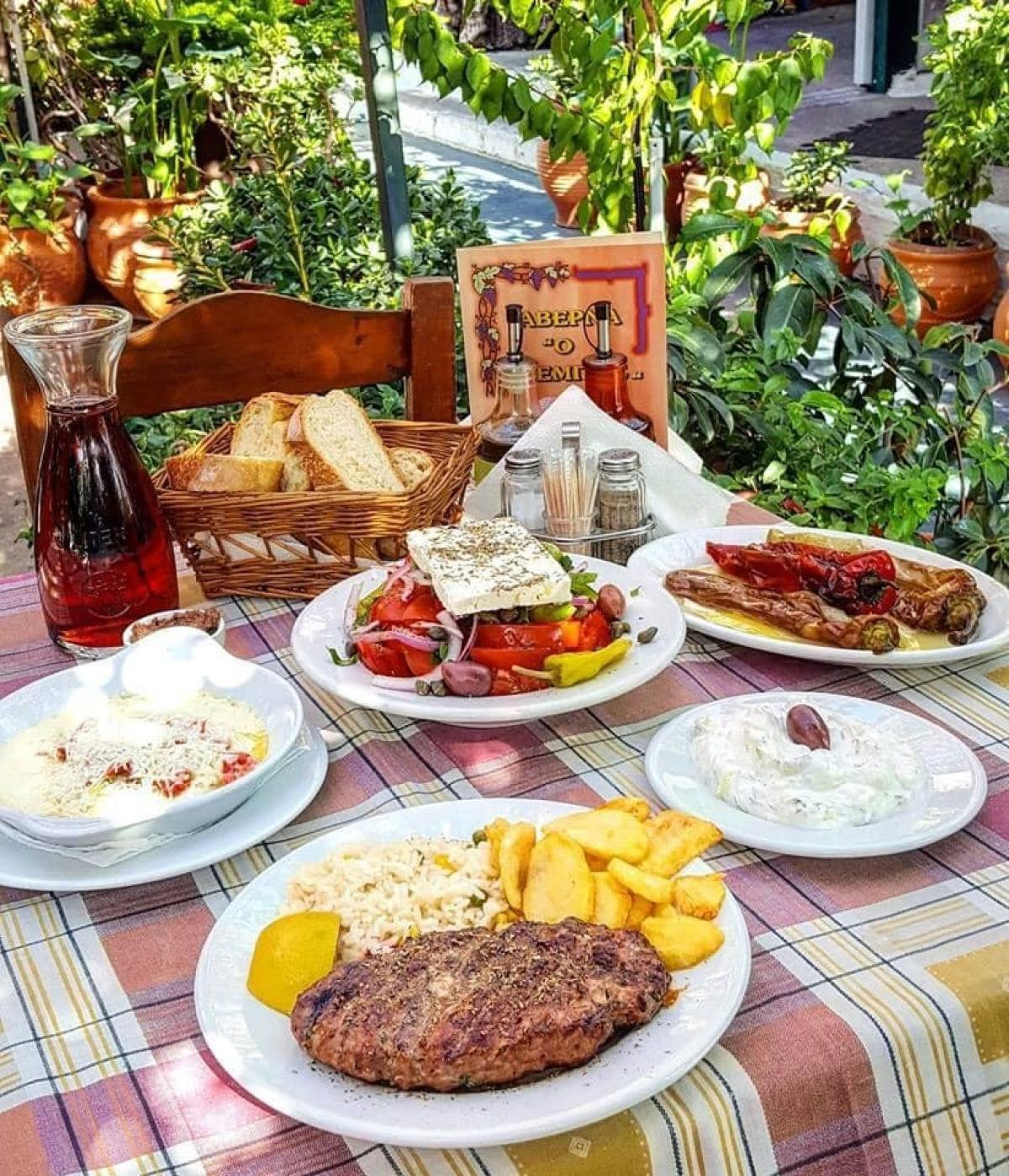tavern "Bebis" in Dafni, with a variety of dishes prepared from first quality