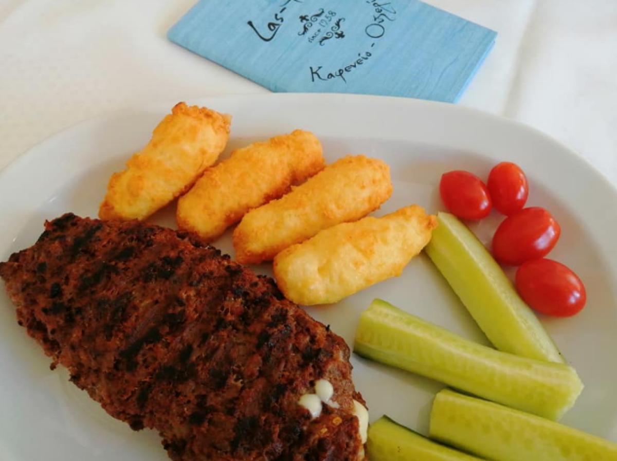 Welcome to the LAS-PAS Coffee house-ooze. It is located in the pine village of Halkidiki and welcomes you to have lunch with your friends and your ouzo. In LAS-PAS Kafeneion you will not find gourmet and foreign food. In no way. But you will find delicious Greek food, made from recipes of the past with a focus on the quality of the raw materials and seasonality. The cook Ms. Katie loves her job and always leaves even the most demanding customers excited.All the food is handmade and prepared by the chefs themselves. They do not buy anything ready-made. Even their ointments are handmade.In the ouzeri LAS-PAS, when customers leave the restaurant, they want them to remember their exquisite flavors! You can try dolmades, zucchini patties, pastrami burger, giant beans, lemon chicken, lamb in a casserole, stew, Smyrna soutzoukakia with handmade tomato sauce. All these are just a few of what you will find at Kafeneion-Ouzeri LAS-PAS in Pefkohori. But seafood and especially saganaki is the specialty of the shop. It is what we call a real treat....Visit the ouzeri LAS-PAS to enjoy authentic Greek traditional cuisine.