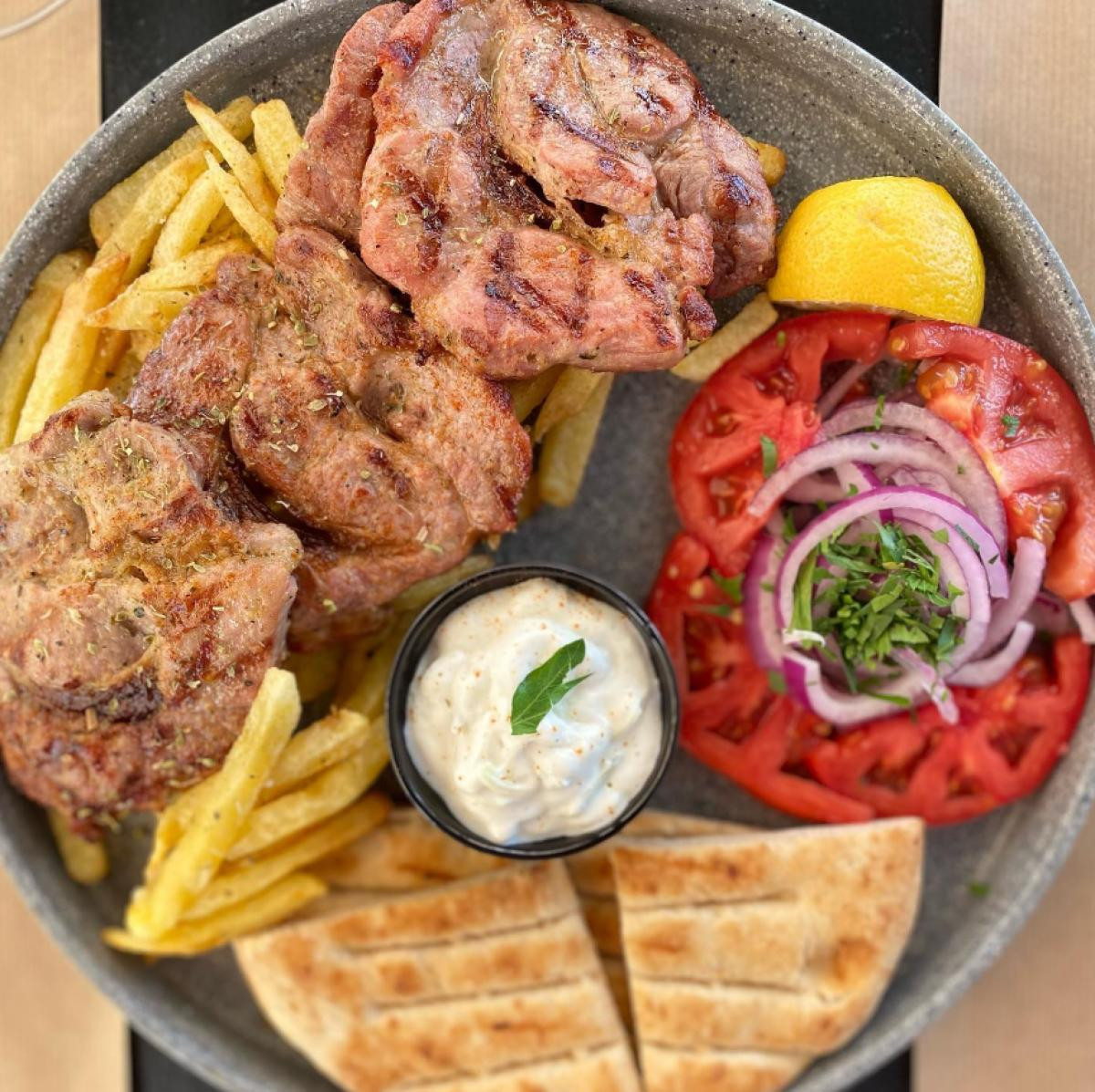 The Panikos grill restaurant in Metamorfosi is the ideal choice for your lunch or dinner.The restaurant's decoration is characterized by a modern aesthetic. The space is dominated by white and light wood, while small pots and plants come to give color to the restaurant. The atmosphere is warm and hospitable while the music gives a parisitic touch to the gastronomic experience offered by Panikos restaurant.Panikos restaurant offers Greek cuisine dishes as well as well-roasted meat dishes. In the menu you will find choices suitable for all hours of the day and for every taste. The dishes are mainly grill dishes, without missing of course the vegeterian options or desserts to complete your meal. From the restaurant's menu you can enjoy dishes such as kebabs, milk liver, milk veal, steaks, potatoes with eggs and fresh salads, while you can accompany your choices with wine or a refreshing beer.Visit Panikos restaurant in Metamorfosi to taste authentic Greek flavors in a friendly and hospitable atmosphere.