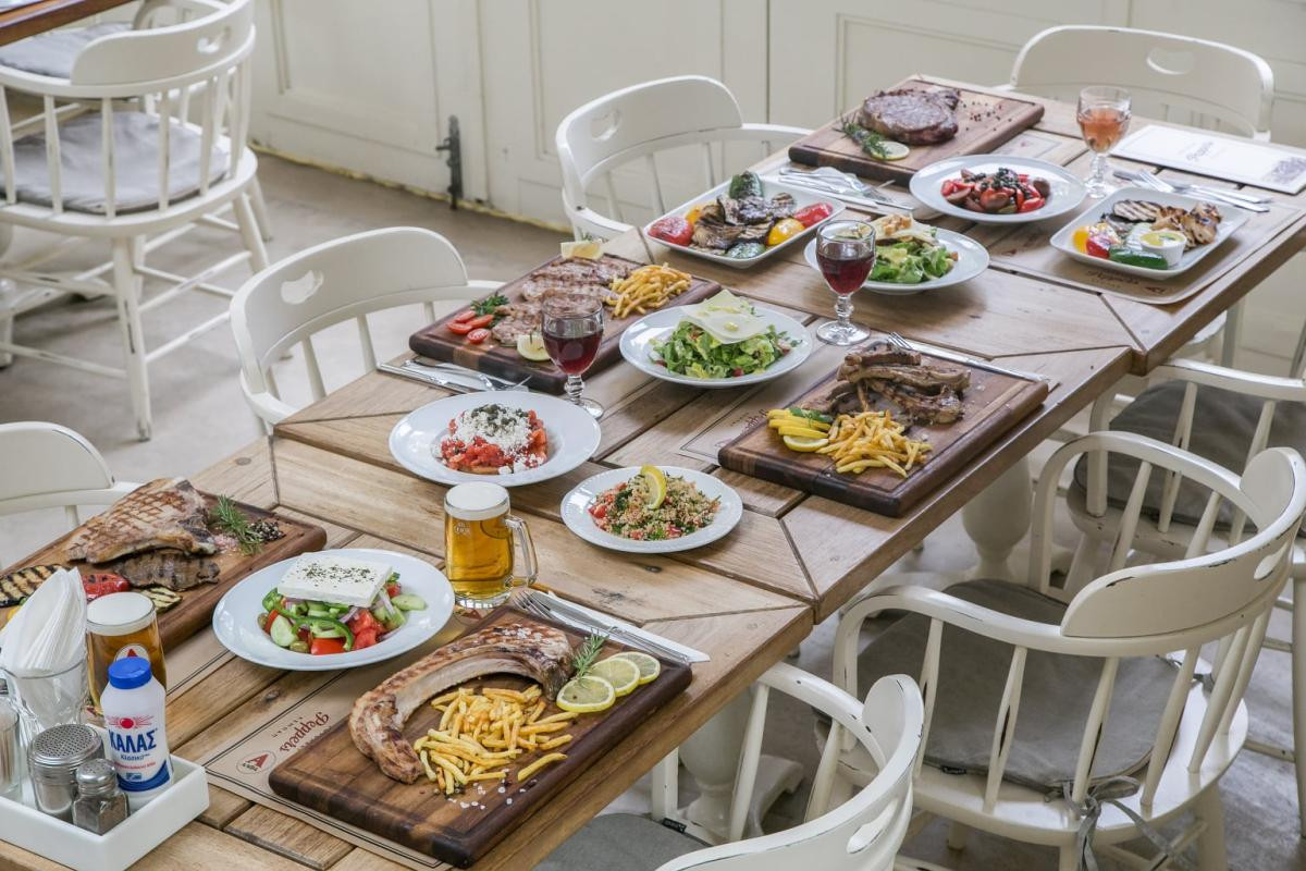 cucumber, olives and xinomyzithra. For main plate, choose beef milk fillets and
