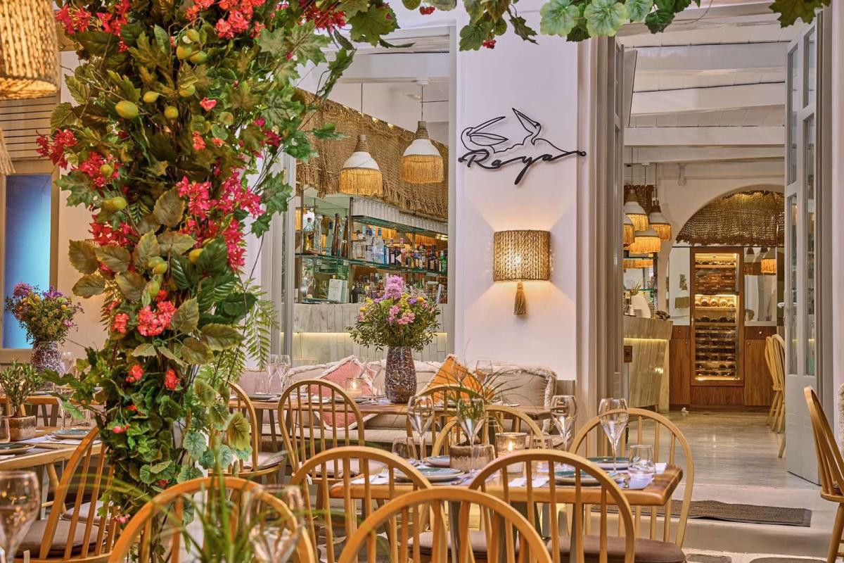 Raya restaurant is located on the glass, in one of the most central points in Mykonos town.Our all day place with modern aesthetics, excellent view of the endless blue sea and dishes that will cover your taste palette.
