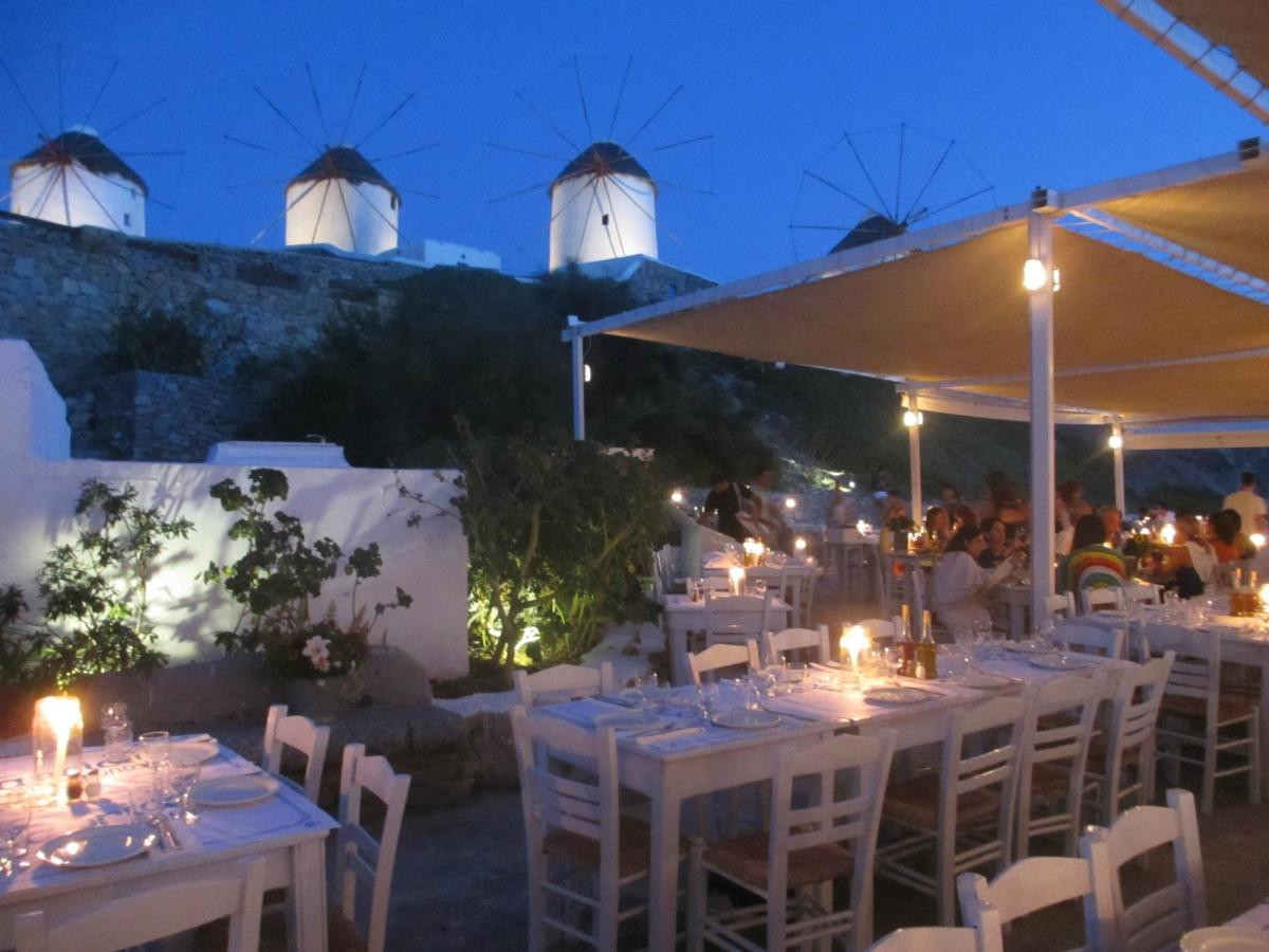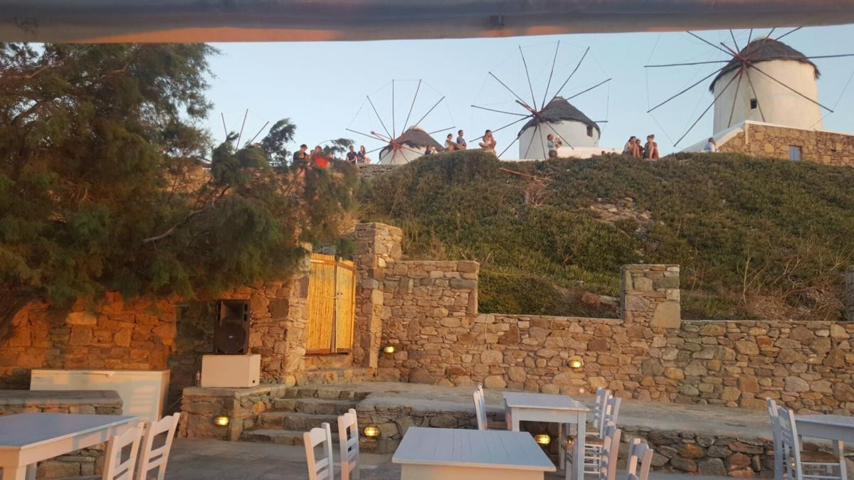 beautiful and cosmopolitan island of the Cyclades, in Mykonos, and specifically, just below the trademark of Mykonos, the Windmills. He takes