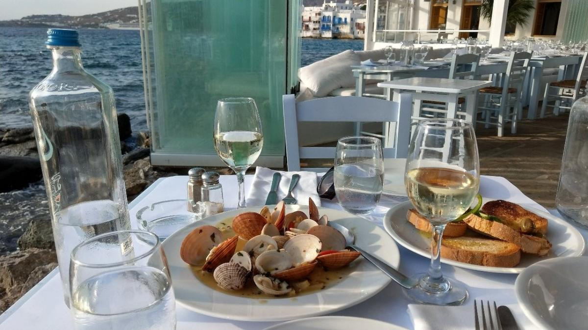 glass of wine from the fully updated wine list of the Sea Satin restaurant, in Mykonos.