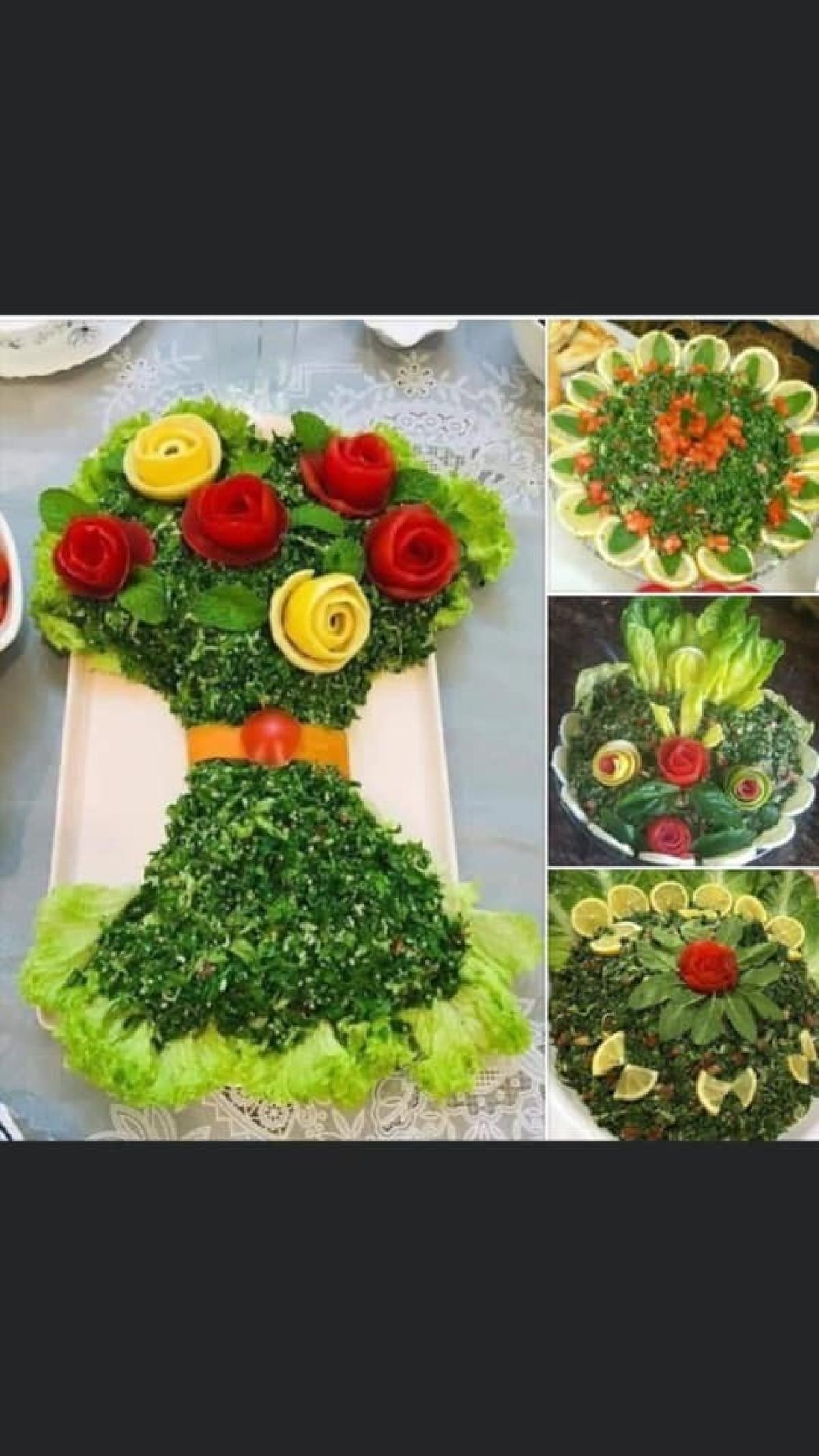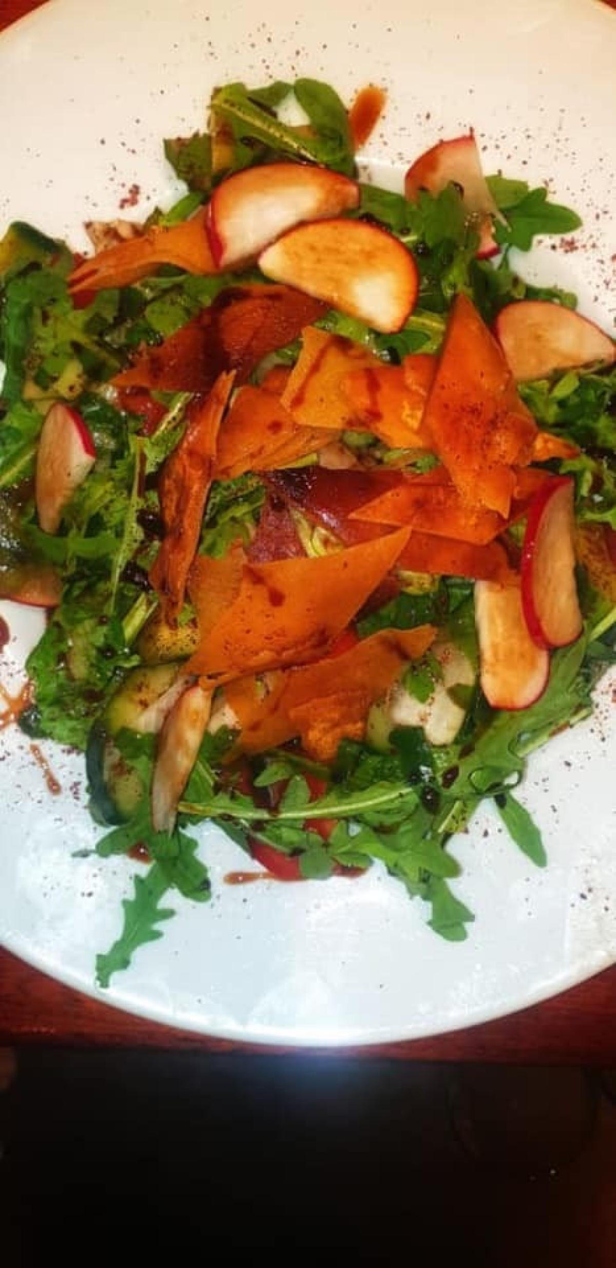 the Fetou salad, with tomato, cucumber, green, and red pepper, radish,