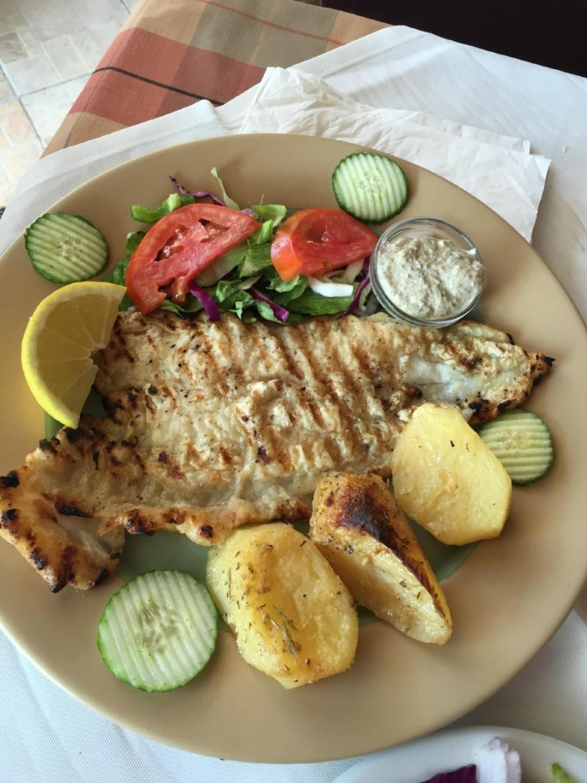 Huge menu with wide variety of Greek food as well as pizzas and burgers and grilled meat. Friendly waiters in a well ventilated terrace venue.
