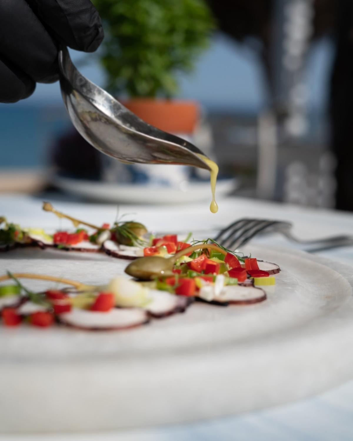We hebben heerlijk gegeten,, kregen goed advies over een bijpassende wijn. De bediening was zeer gastvrij en vriendelijk. Het terras beeldschoon en het uitzicht op zee beeldschoon.