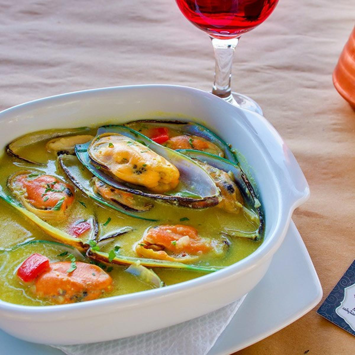 sauce, parmesan and sour cream, the Corfu shrimp spaghetti with mussels,